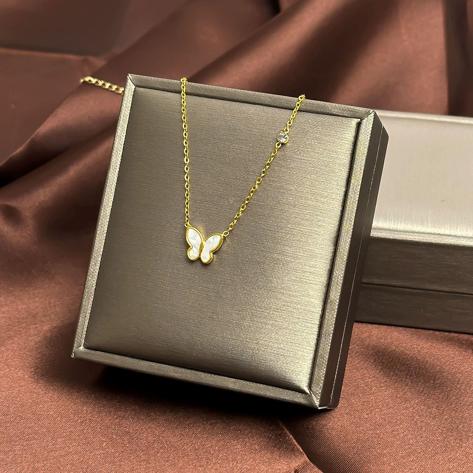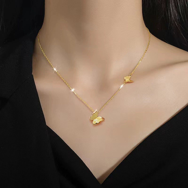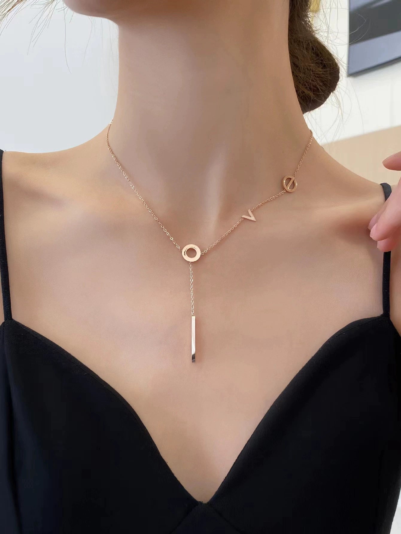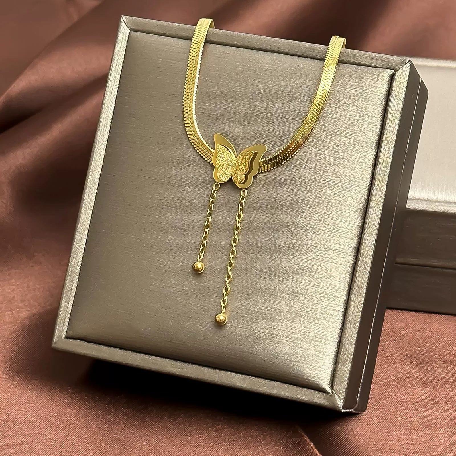 Titanium Steel Jewelry Pendant Bracelet Necklace Ear Clip Accessories With Four Leaf Clover Butterfly Geometric Pattern Electroplated For Women