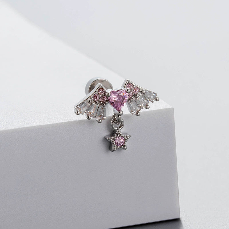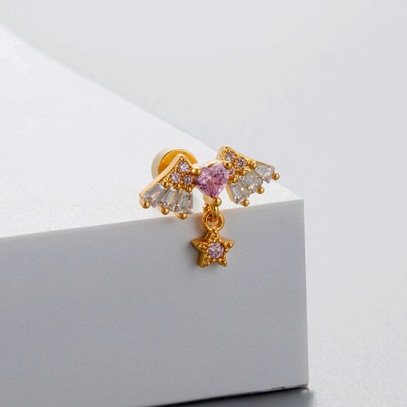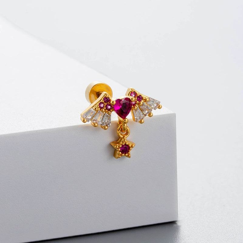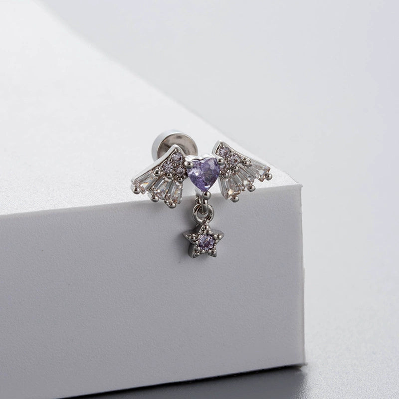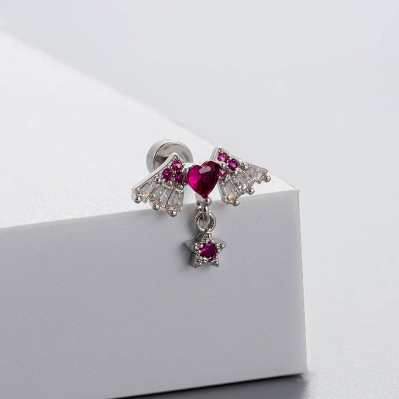 Titanium Steel Women's Fairy Style Heart Shape Zircon Earrings