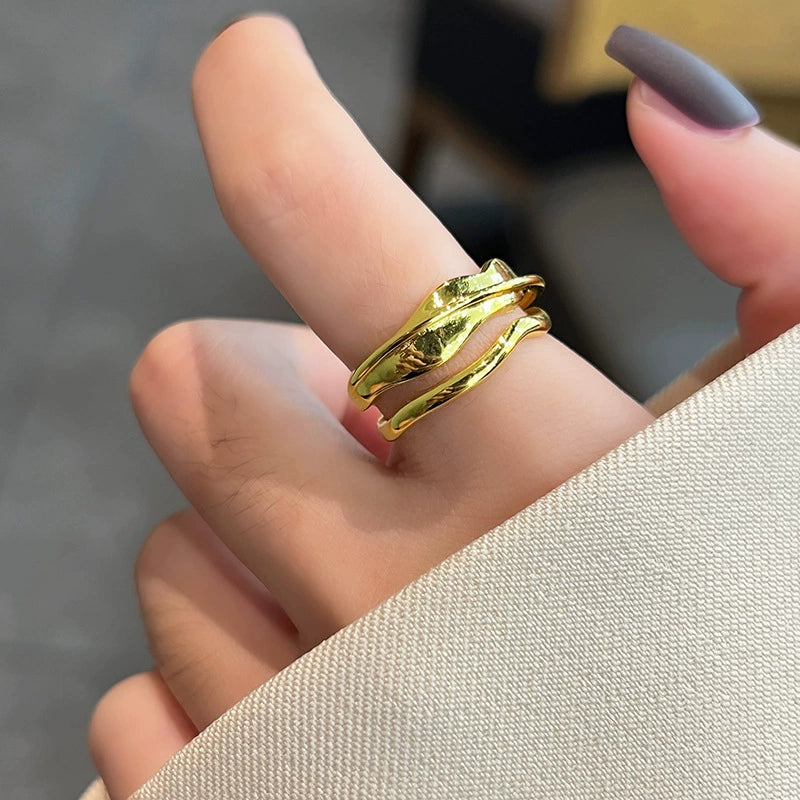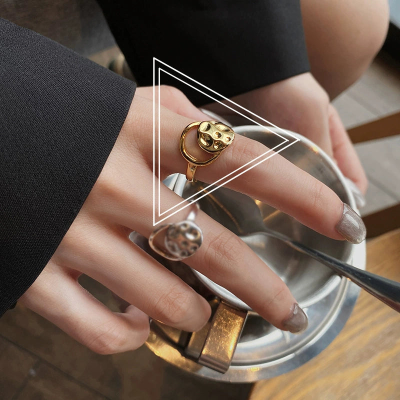 Trendy Metal Texture Ring In Cold Style With Geometric Pattern Silver Plated Electroplating For Women