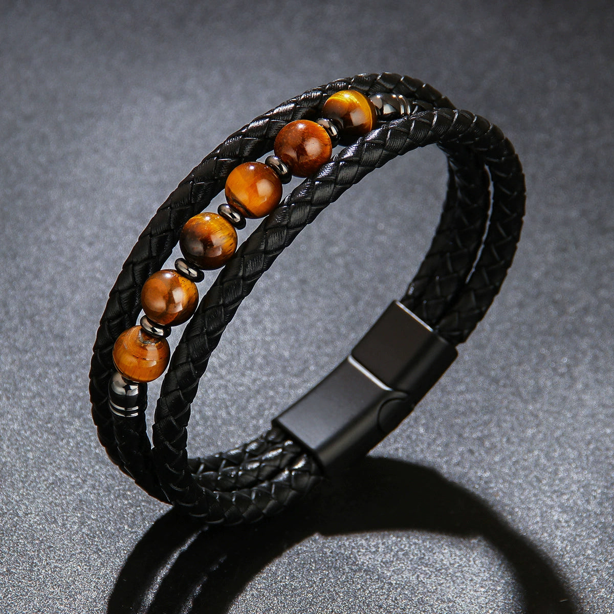 Unisex Handmade Mixed Material Multilayer Woven Leather And Pu Leather Bracelet With Geometric Pattern