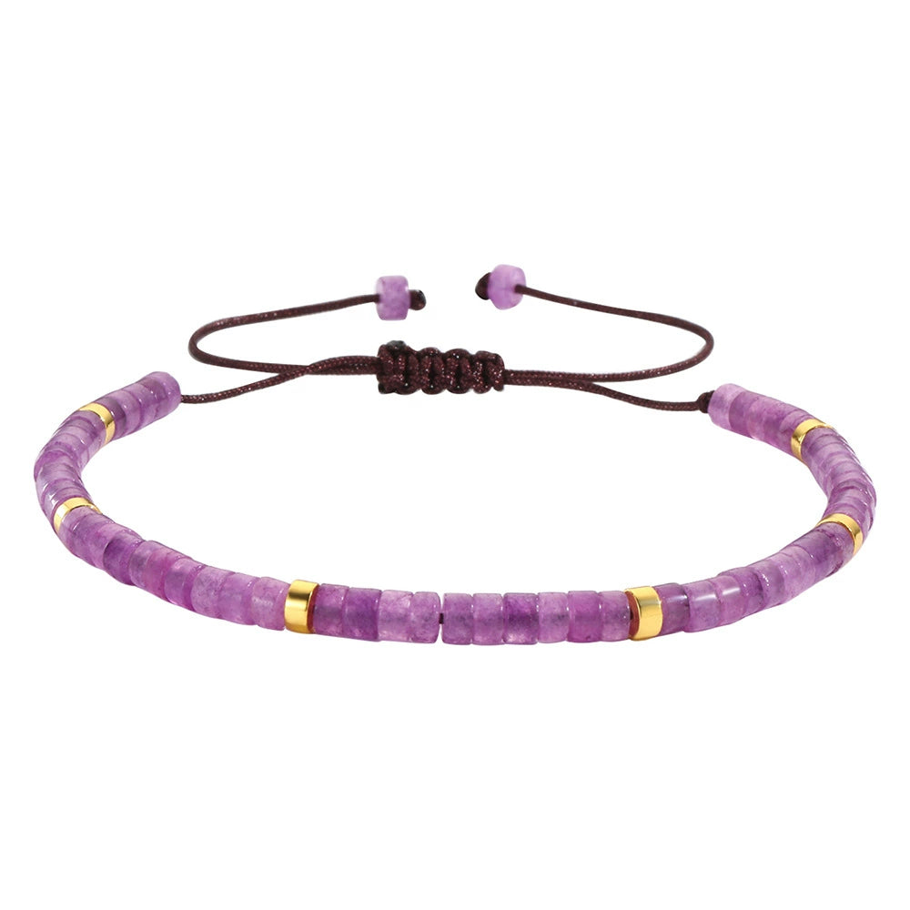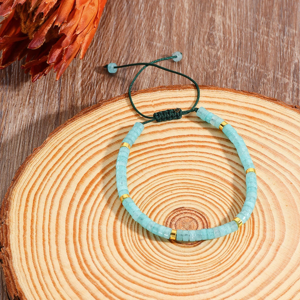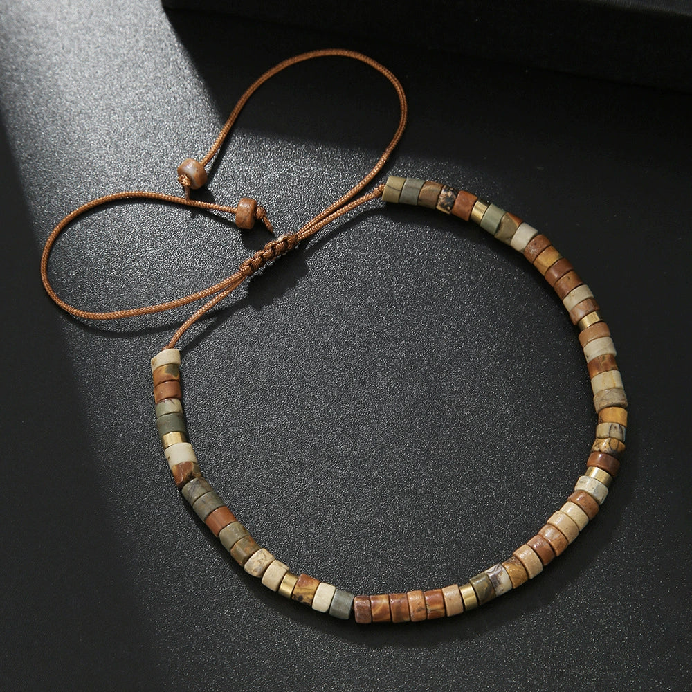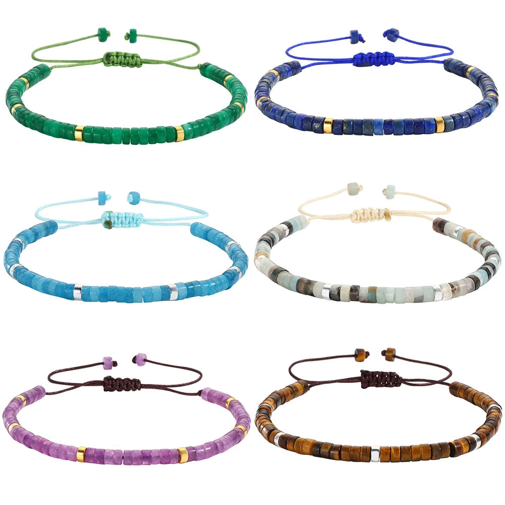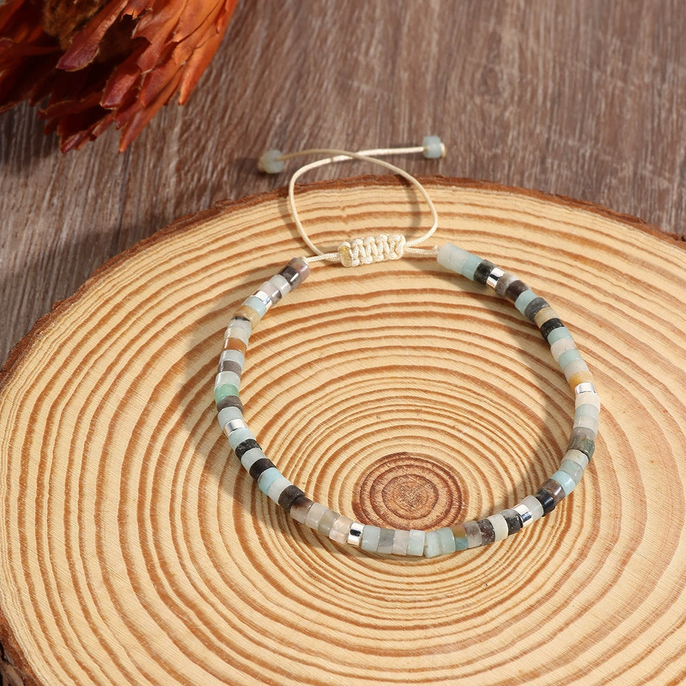Unisex Handmade Natural Stone Geometric Beaded Woven Bracelet