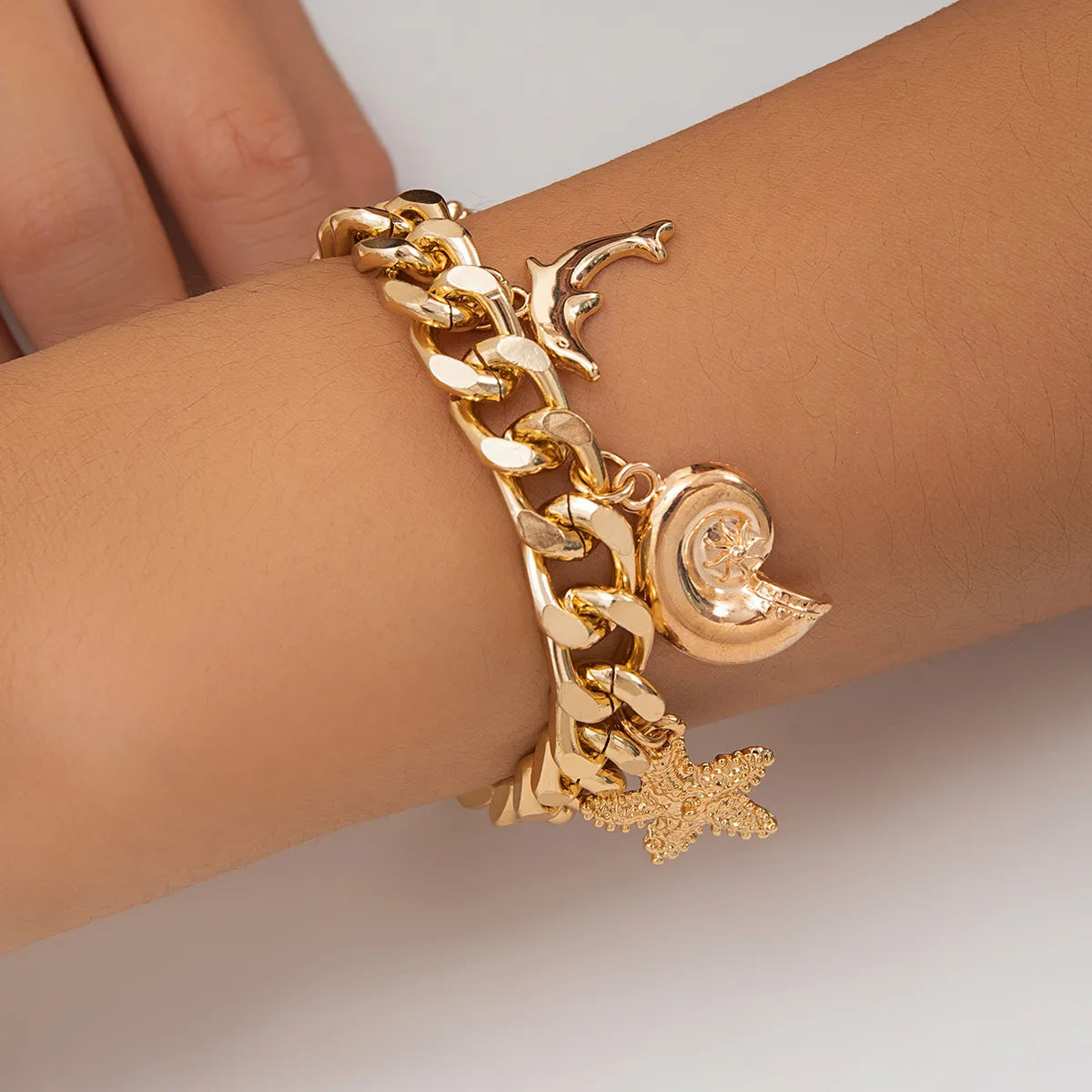Vacation Beach Starfish Dolphin Shell Alloy Aluminum Wholesale Bracelets