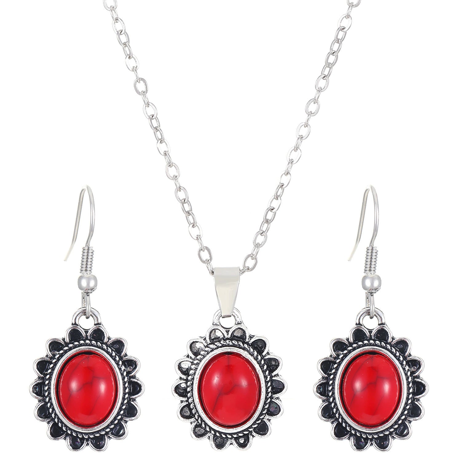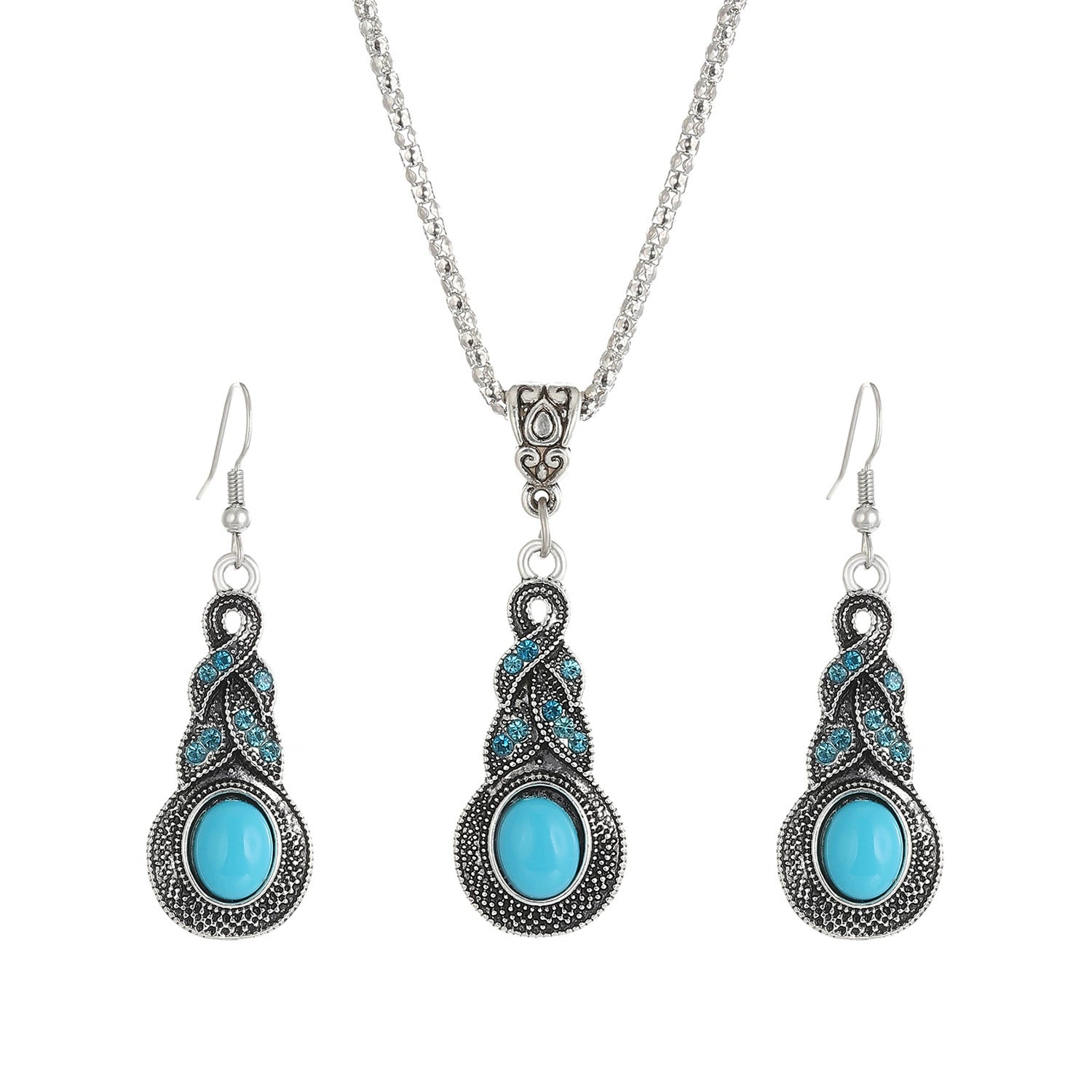 Vintage Blue Crystal Inlaid Turquoise Earrings For Women Alloy Material With Geometric Pattern And Electroplating Process
