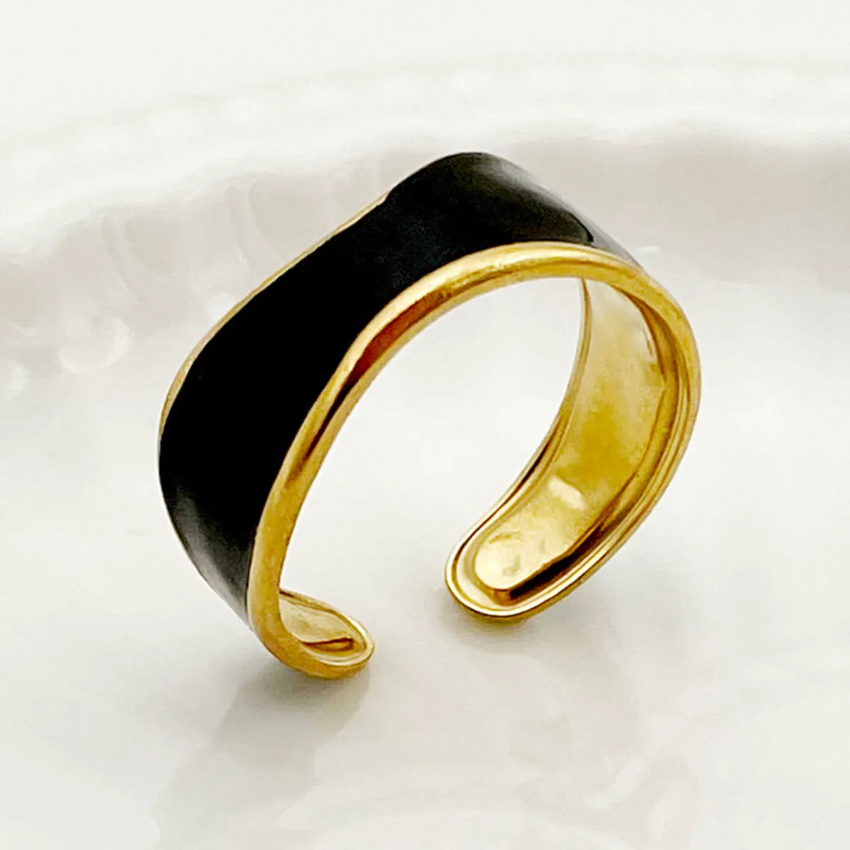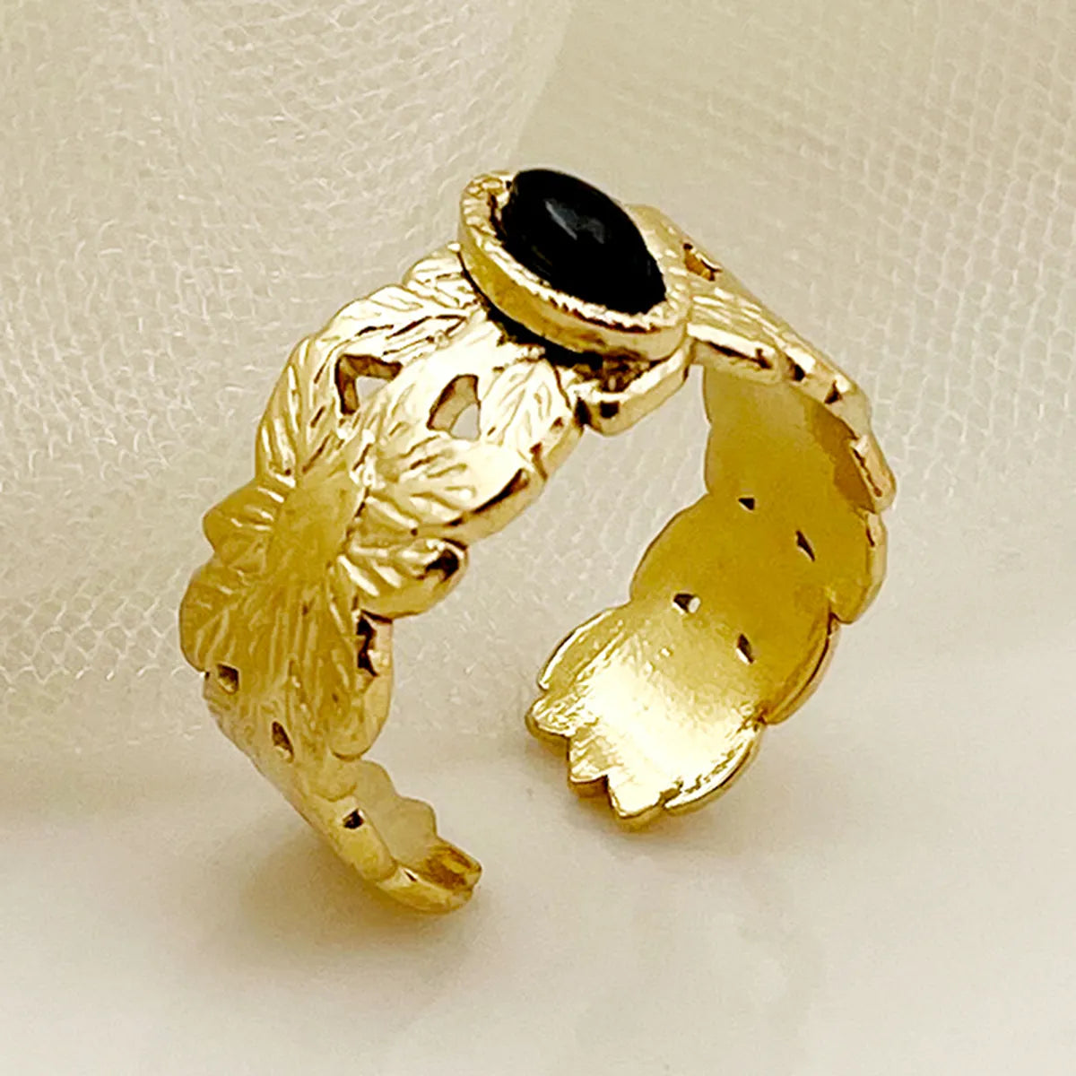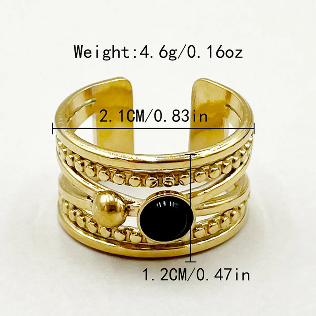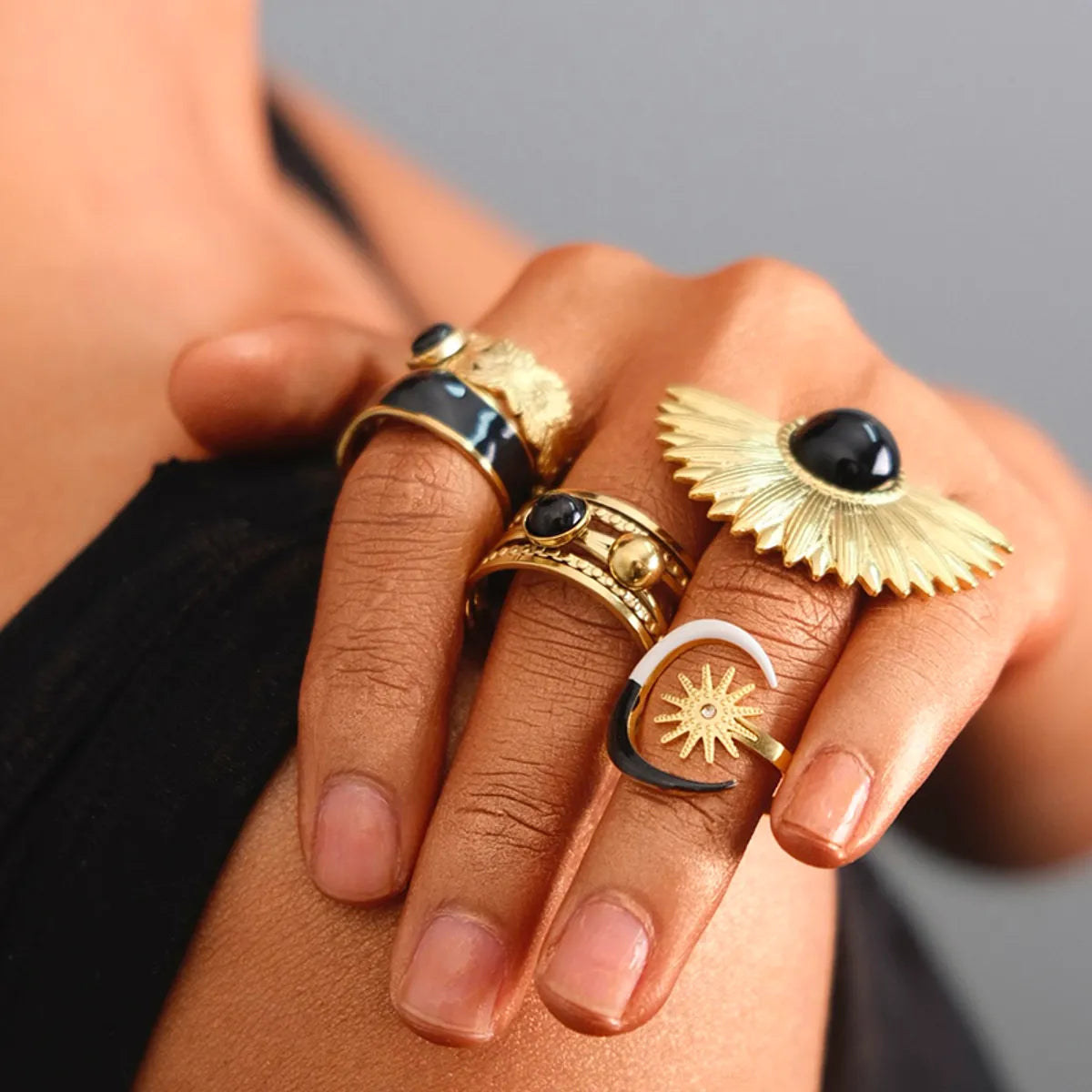 Vintage Style Commute Sector Moon 304 Stainless Steel 14K Gold Plated Natural Stone Zircon Rings In Bulk