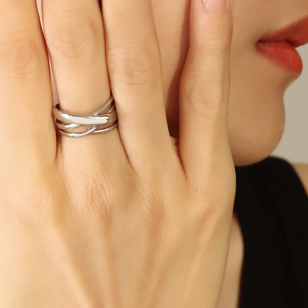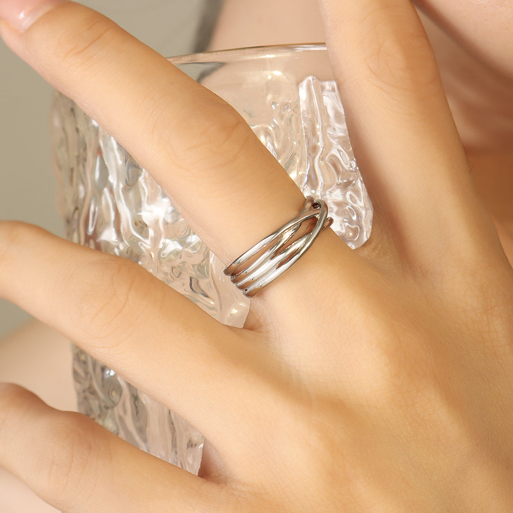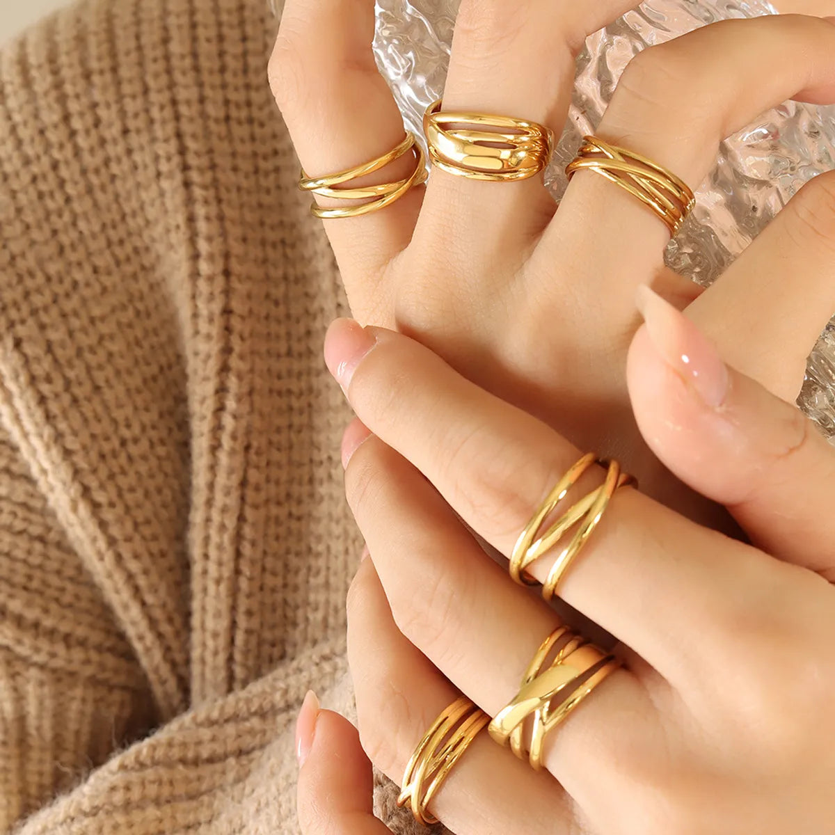 Vintage Style Geometric Titanium Steel Plating 18k Gold Plated Open Ring