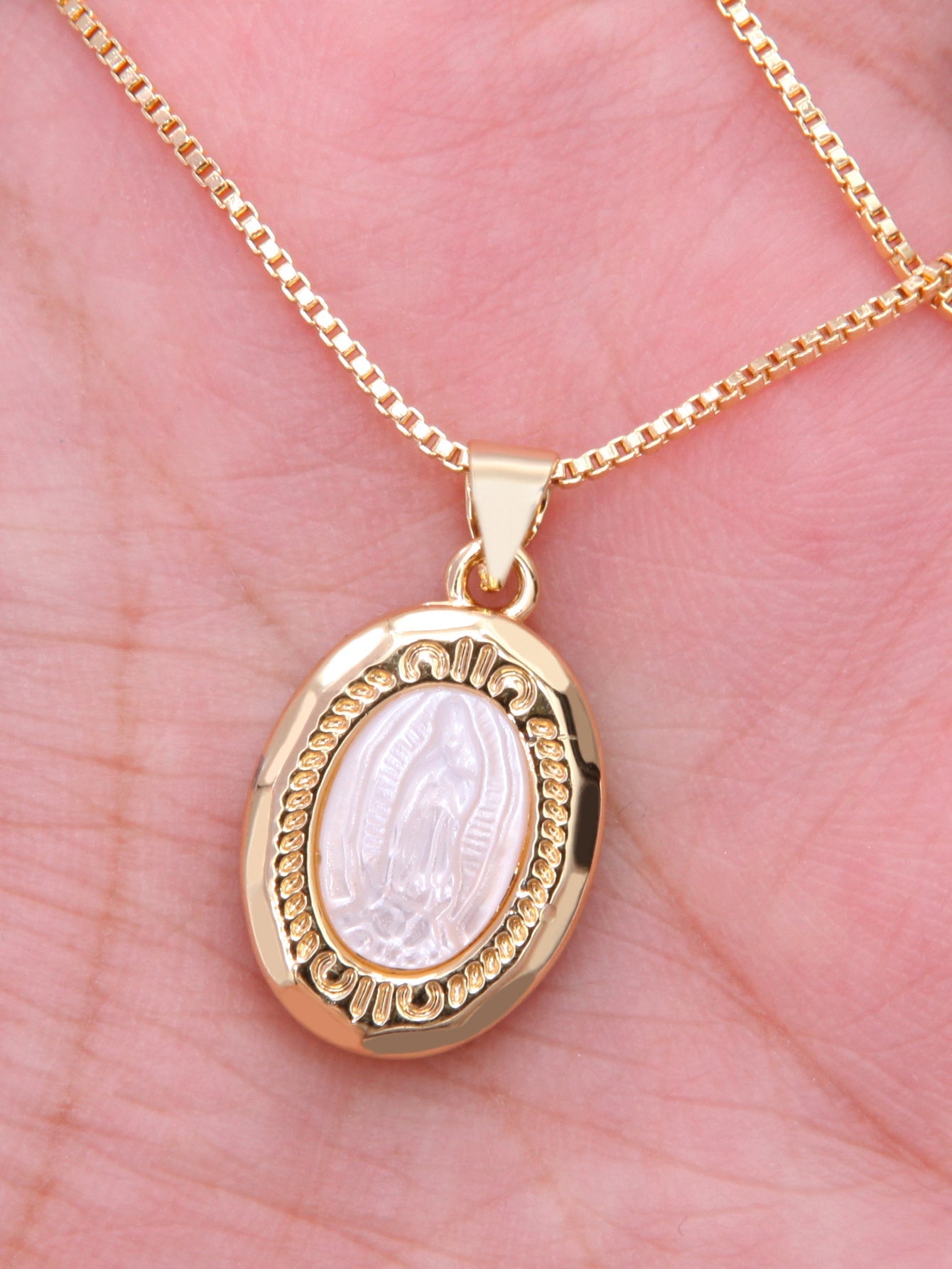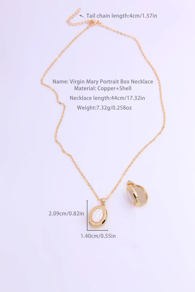 Vintage Style Oval Copper Plating Inlay Carving Shell 18k Gold Plated Pendant Necklace