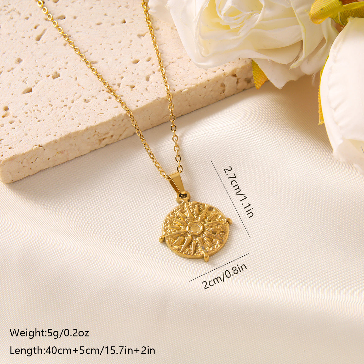 Vintage Style Sun Stainless Steel Plating 18k Gold Plated Pendant Necklace