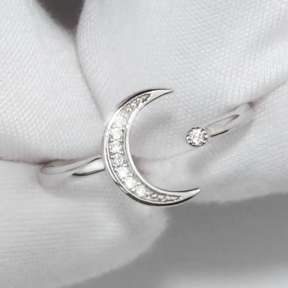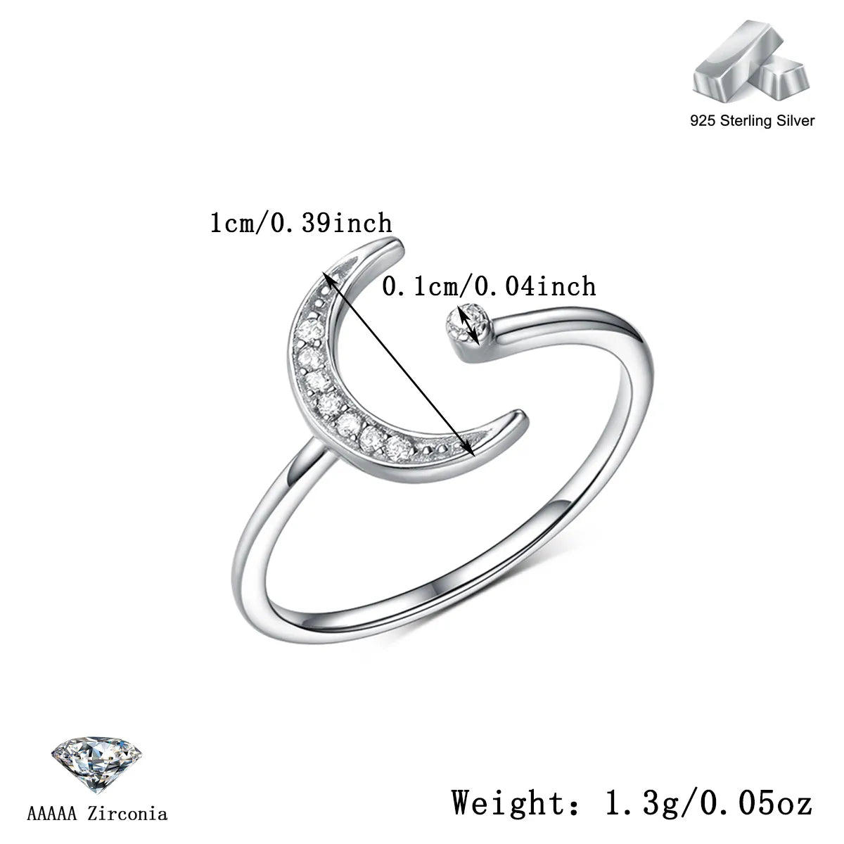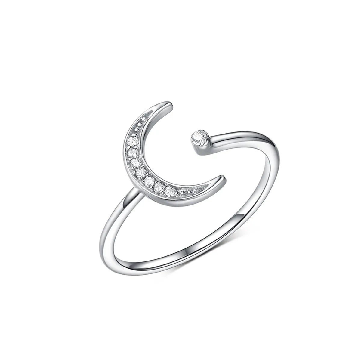 White Gold Plated Sterling Silver Zircon Moon Open Rings