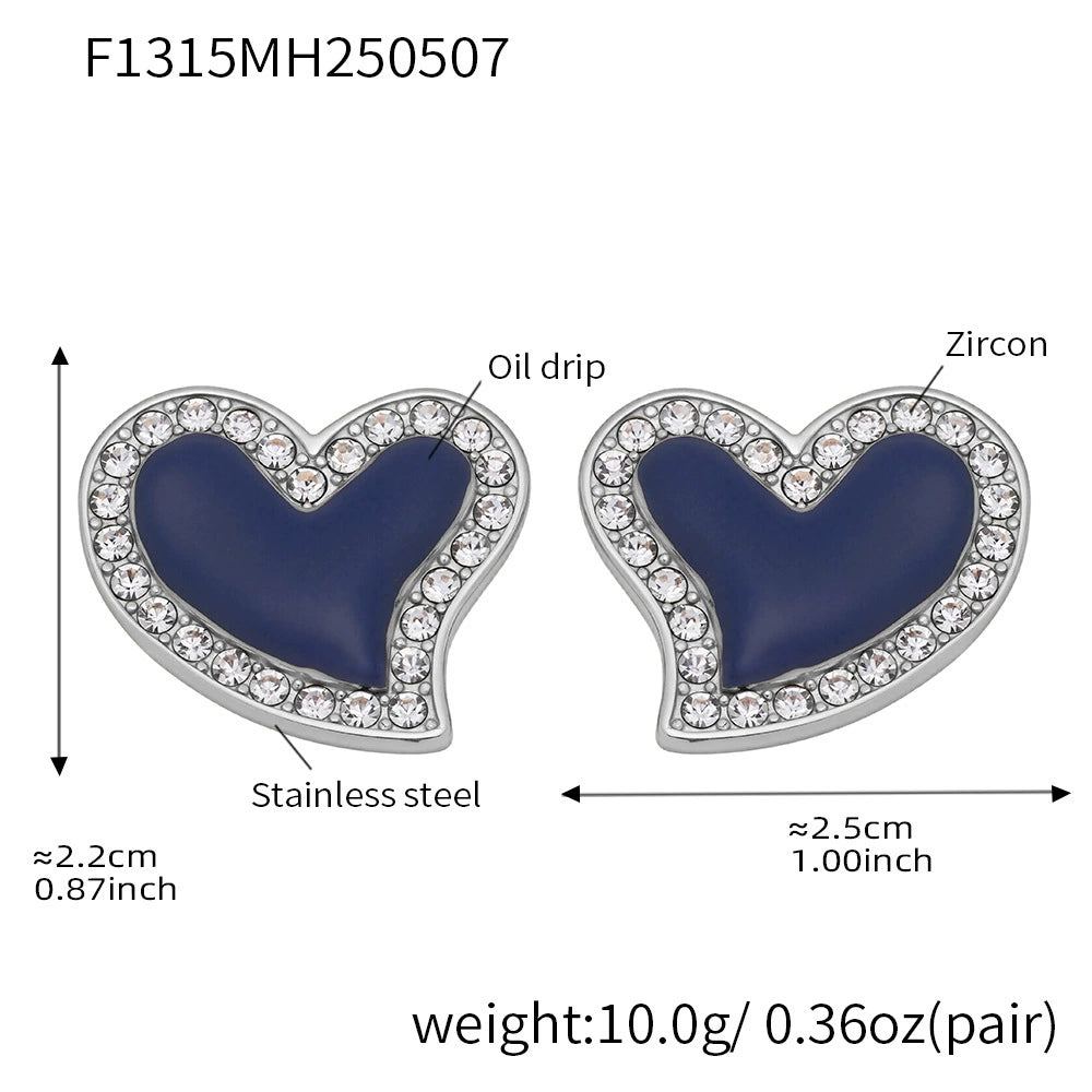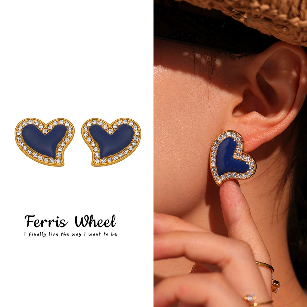 Wholesale 18K Real Gold Plated Enamel Stainless Steel Geometric Ferris Wheel And Peach Heart Split Earrings For Women