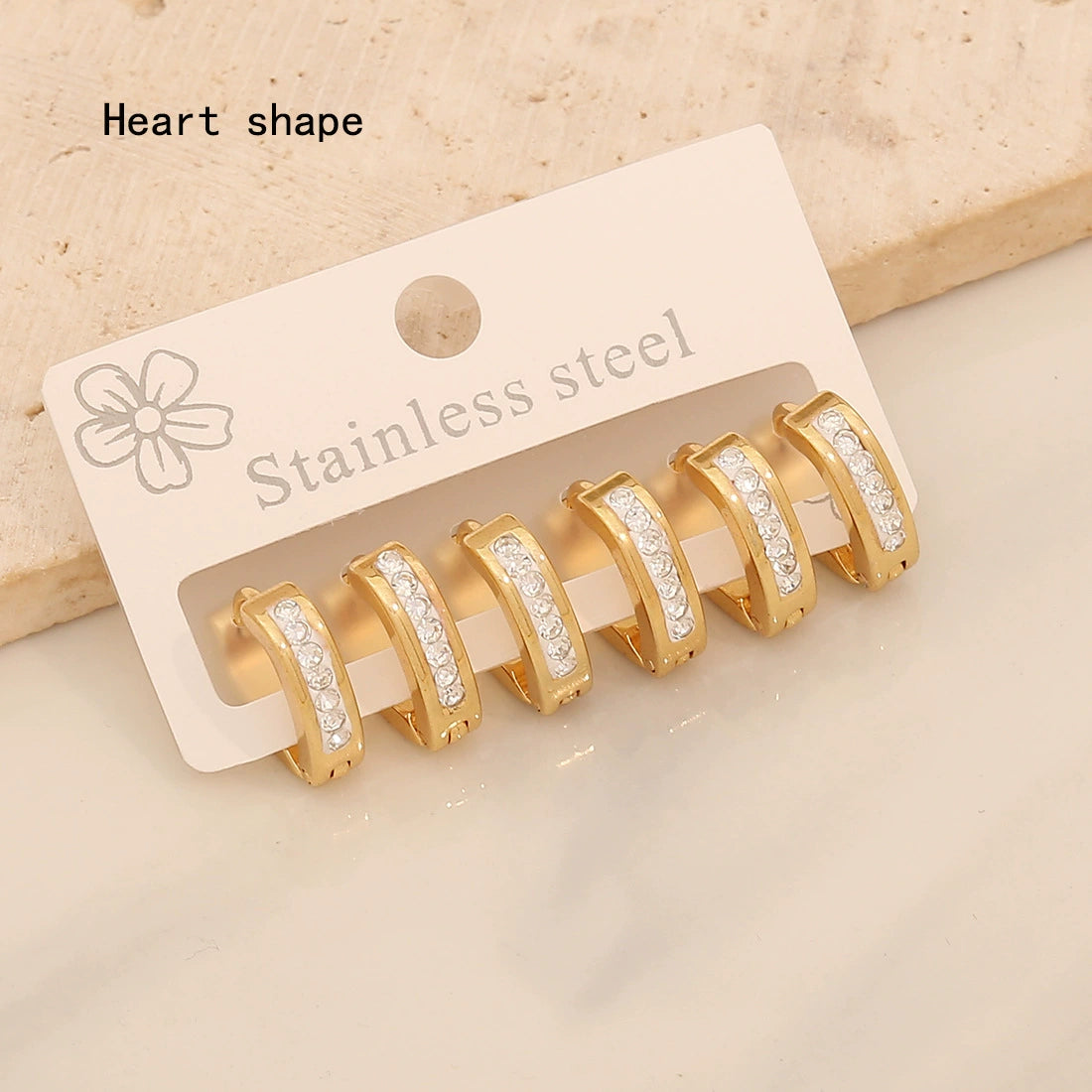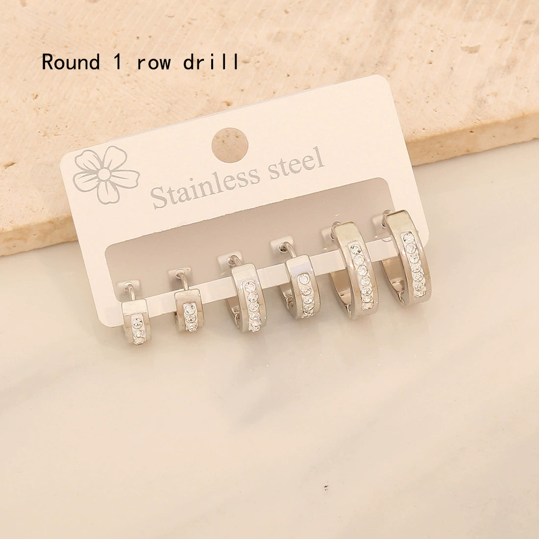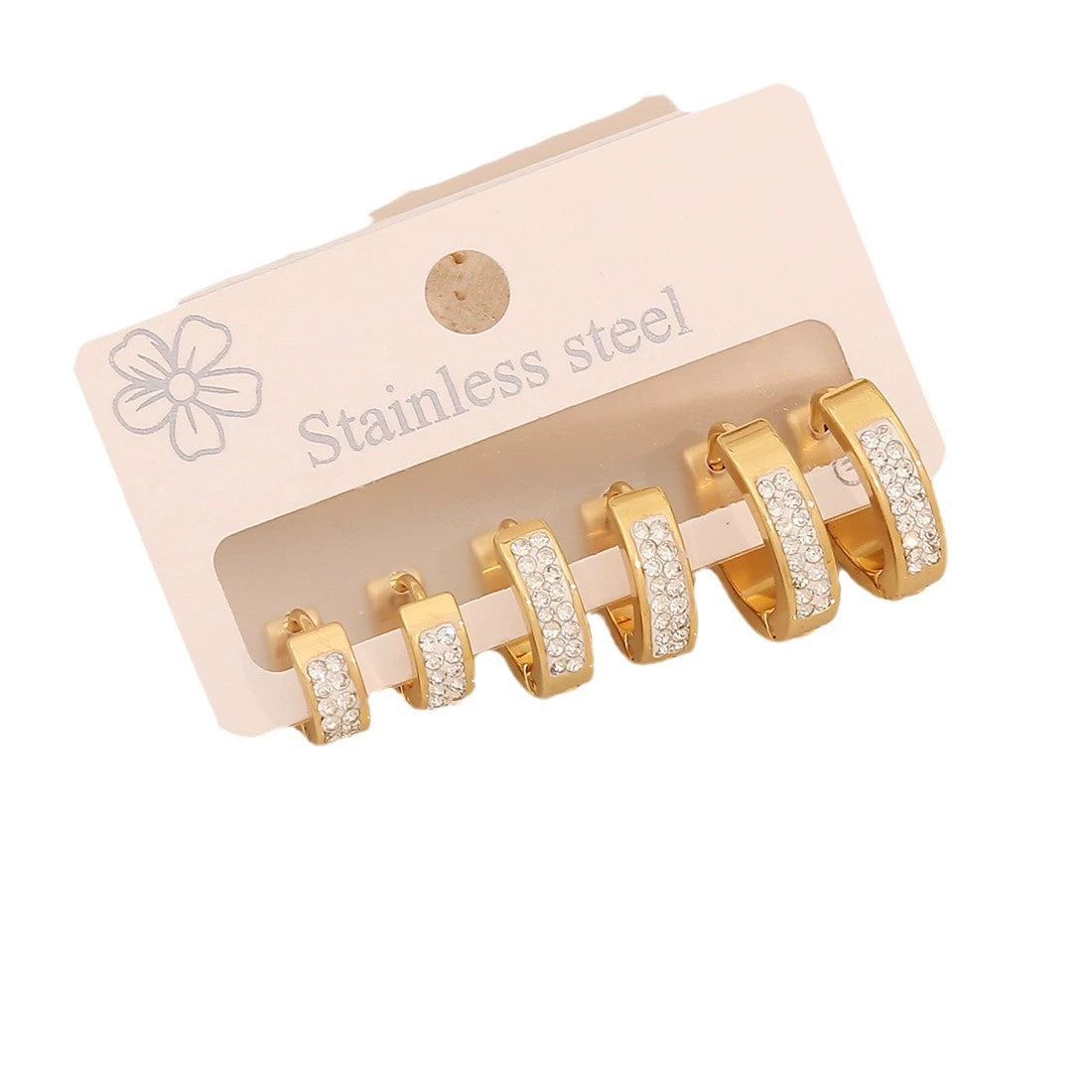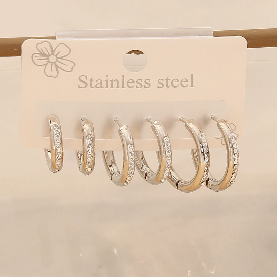 Wholesale 3 Pairs Of Women's Geometric Stainless Steel Electroplated Round Diamond Earrings