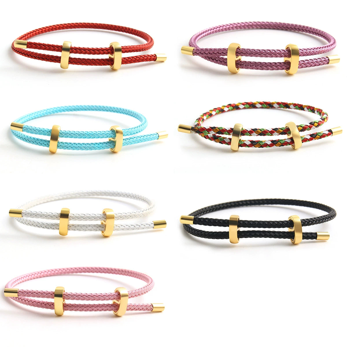 Wholesale Adjustable Copper And Steel Wire Rope Bracelet With Goldplated Eightword Buckle Geometric Rhombus Style Unisex Couple Jewelry