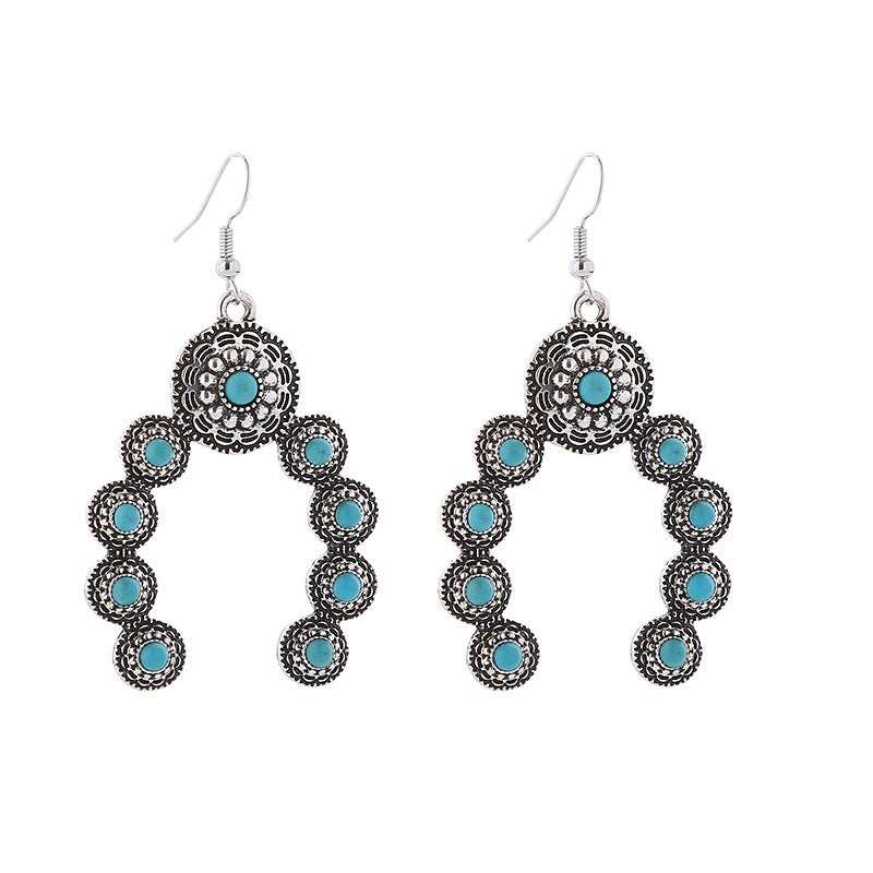 Wholesale Alloy Inlaid Turquoise Geometric Creative Exaggerated Women's Earrings
