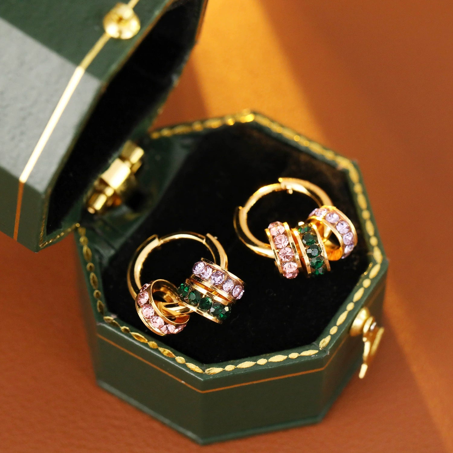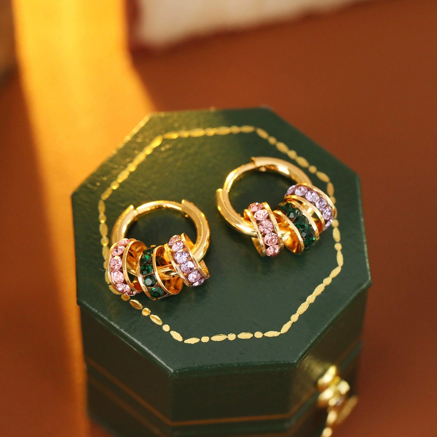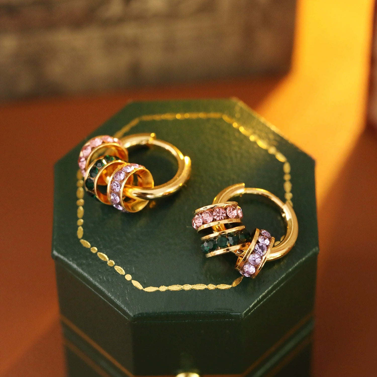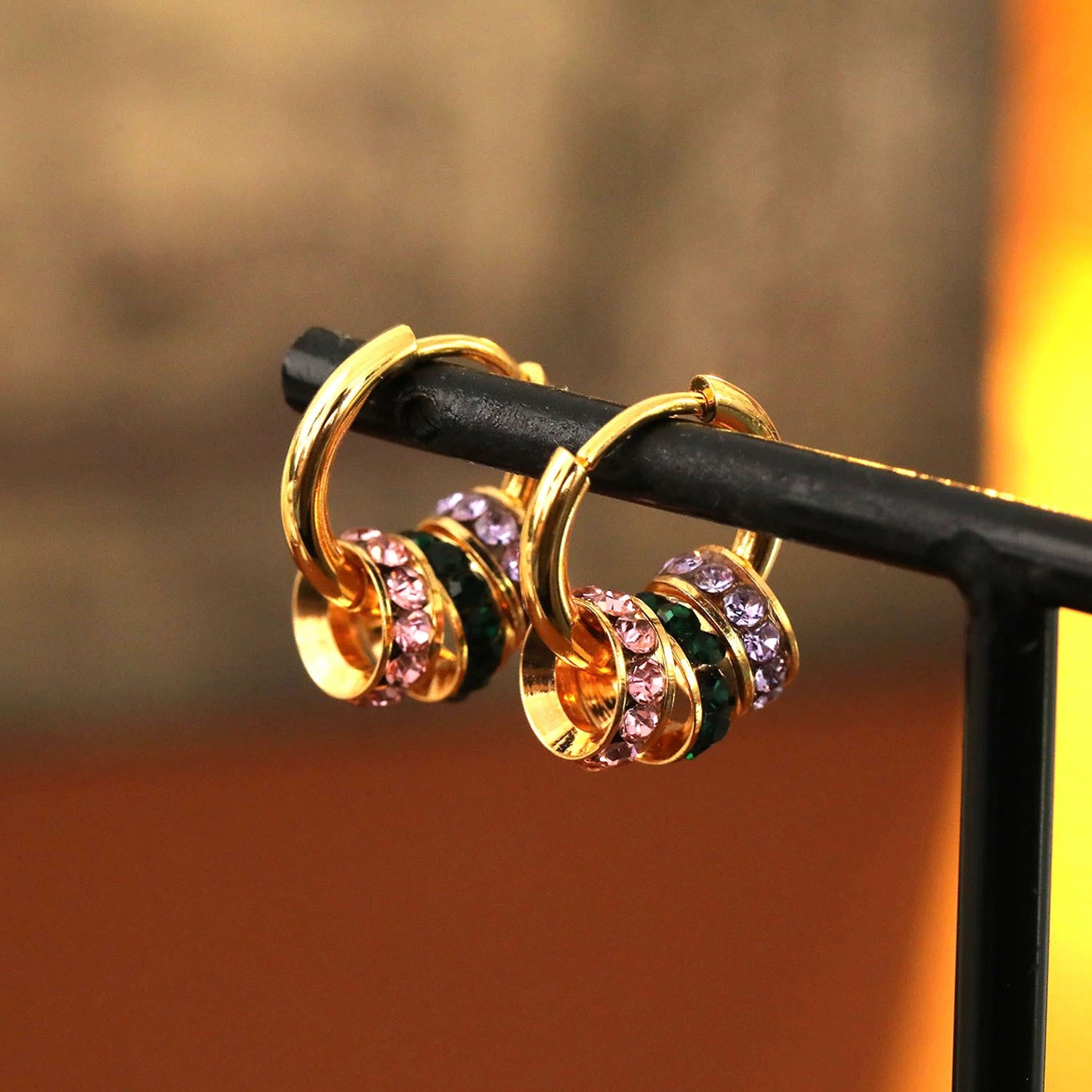 Wholesale Copper Geometric Hoop Earrings With Threecolor Diamond Electroplating For Women Retro Style