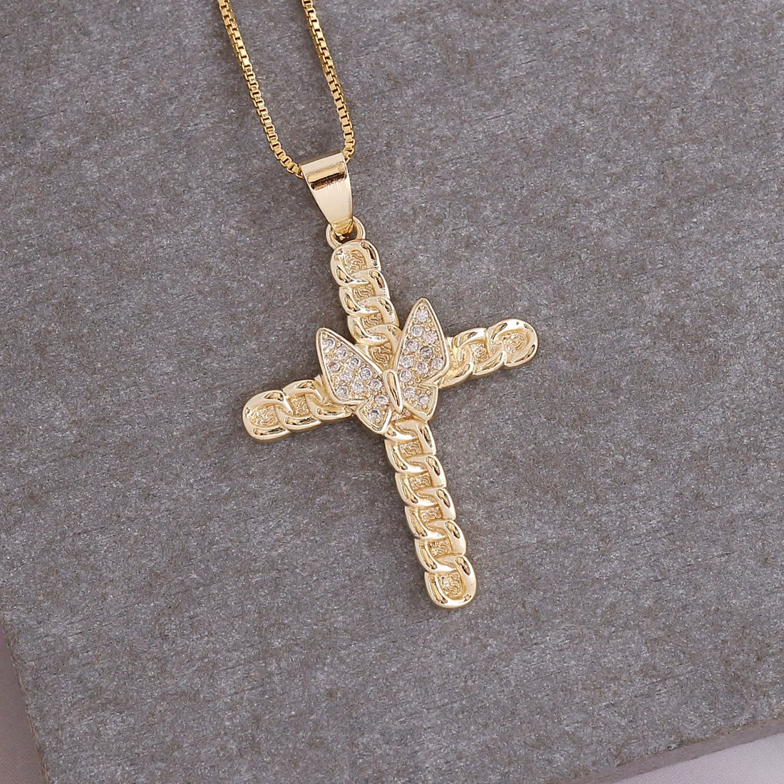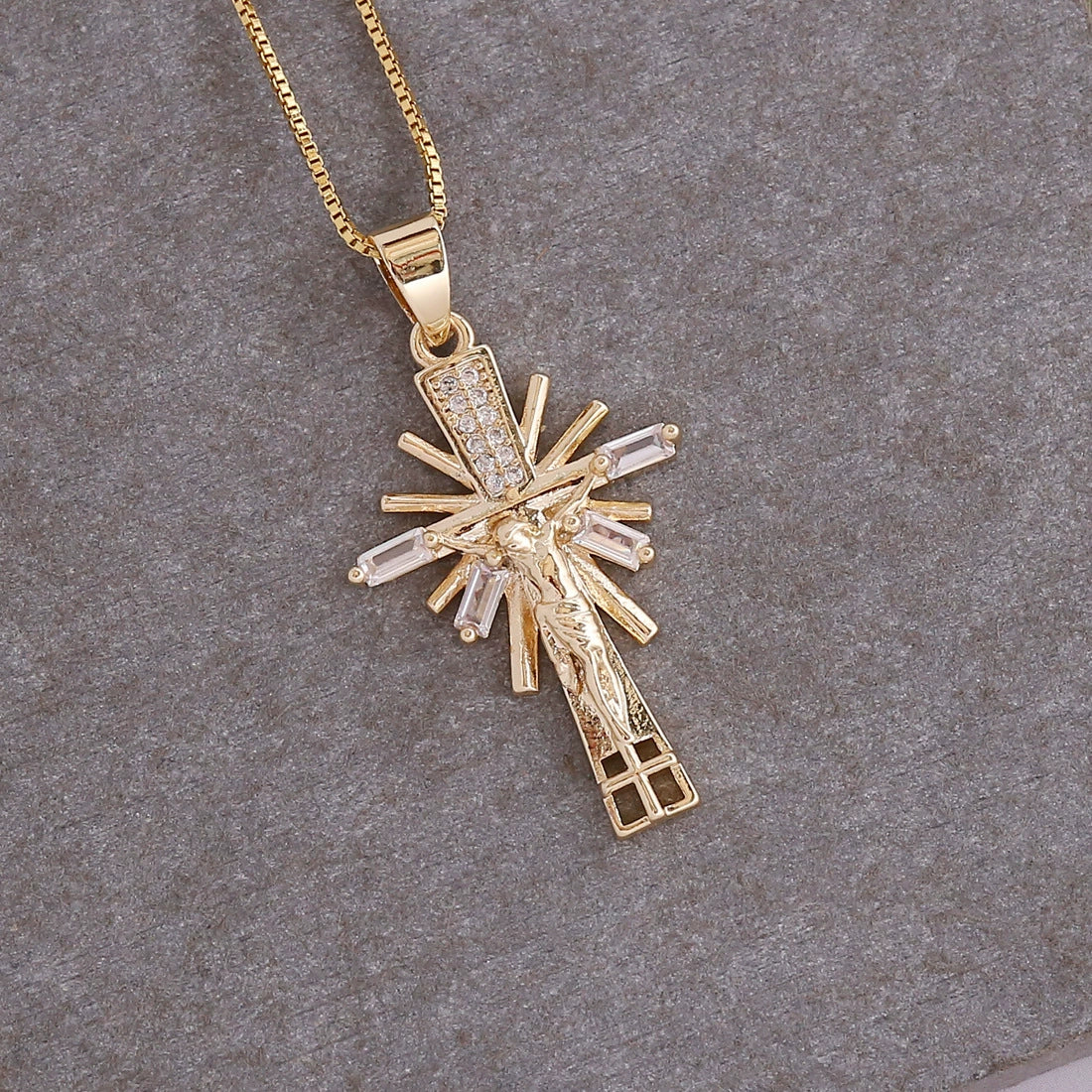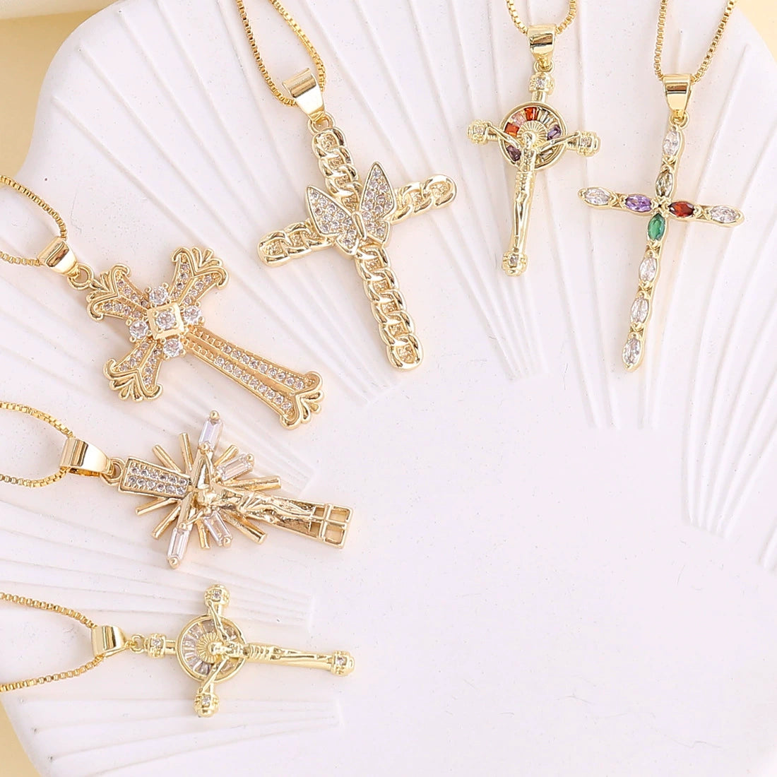 Wholesale Copper Microinlaid Zircon Cross Pendant Hiphop Necklace Electroplated Unisex