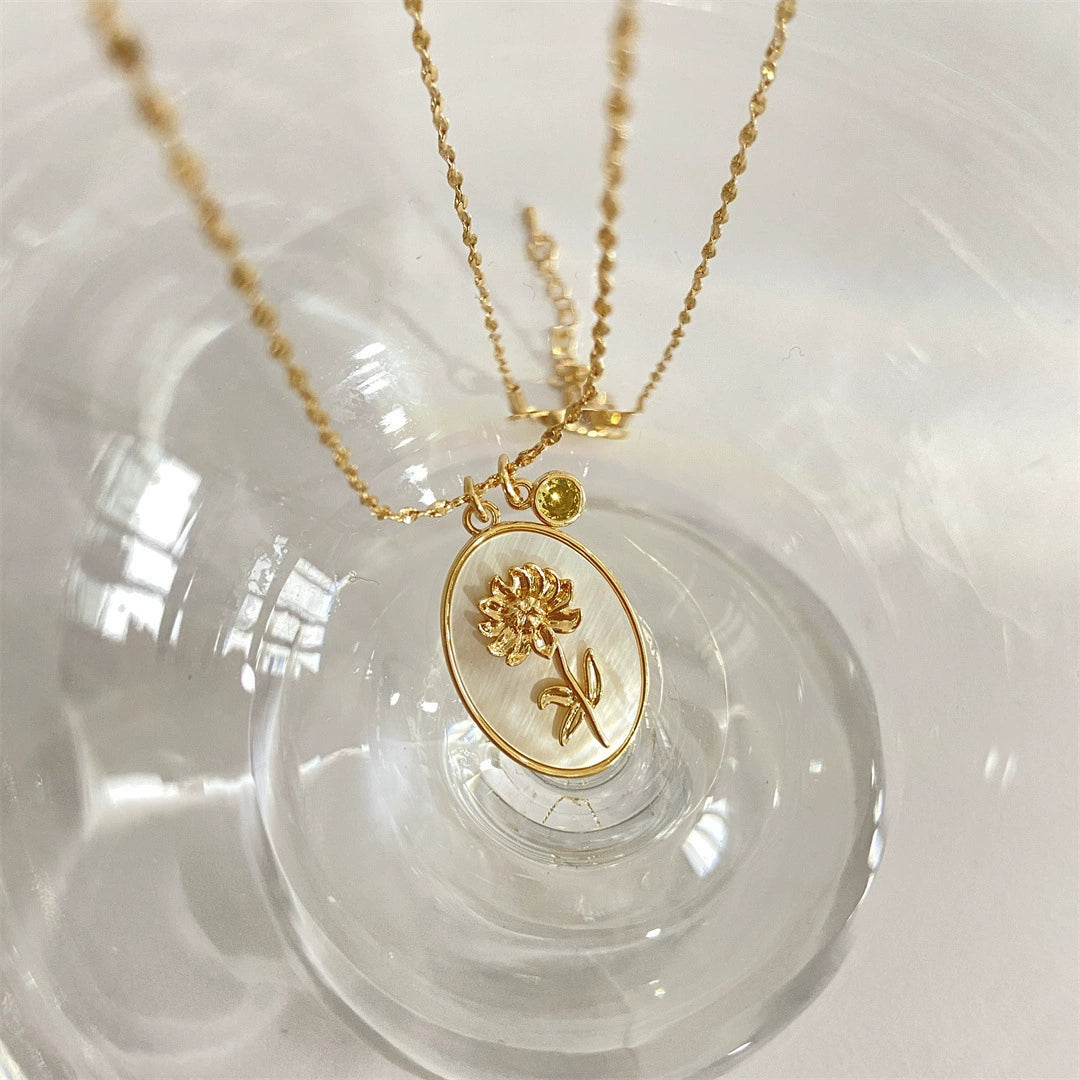 Wholesale Copper Retro Flower Oval Pendant Necklace