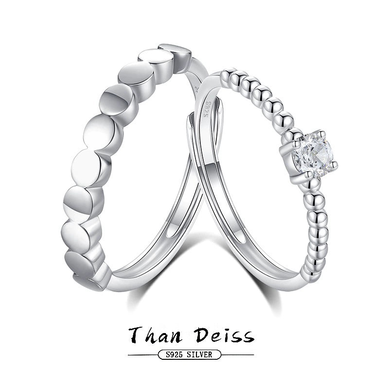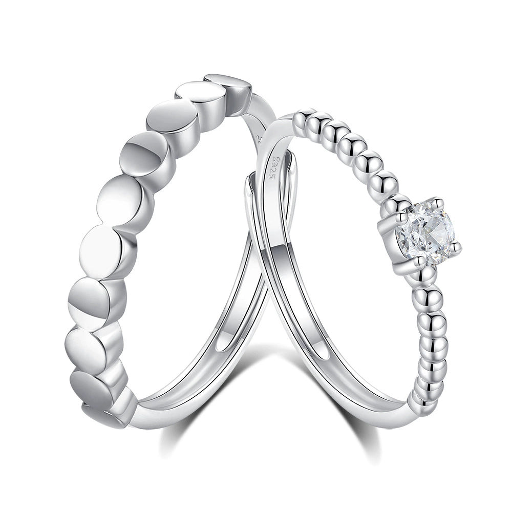 Wholesale Couple Open Ring 925 Silver High Sense Geometric Single Diamond