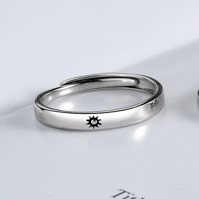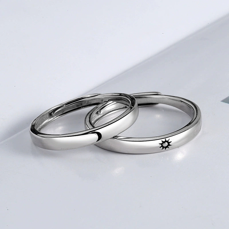 Wholesale Couple Ring S925 Sterling Silver Electroplated Sun Moon And Stars Design