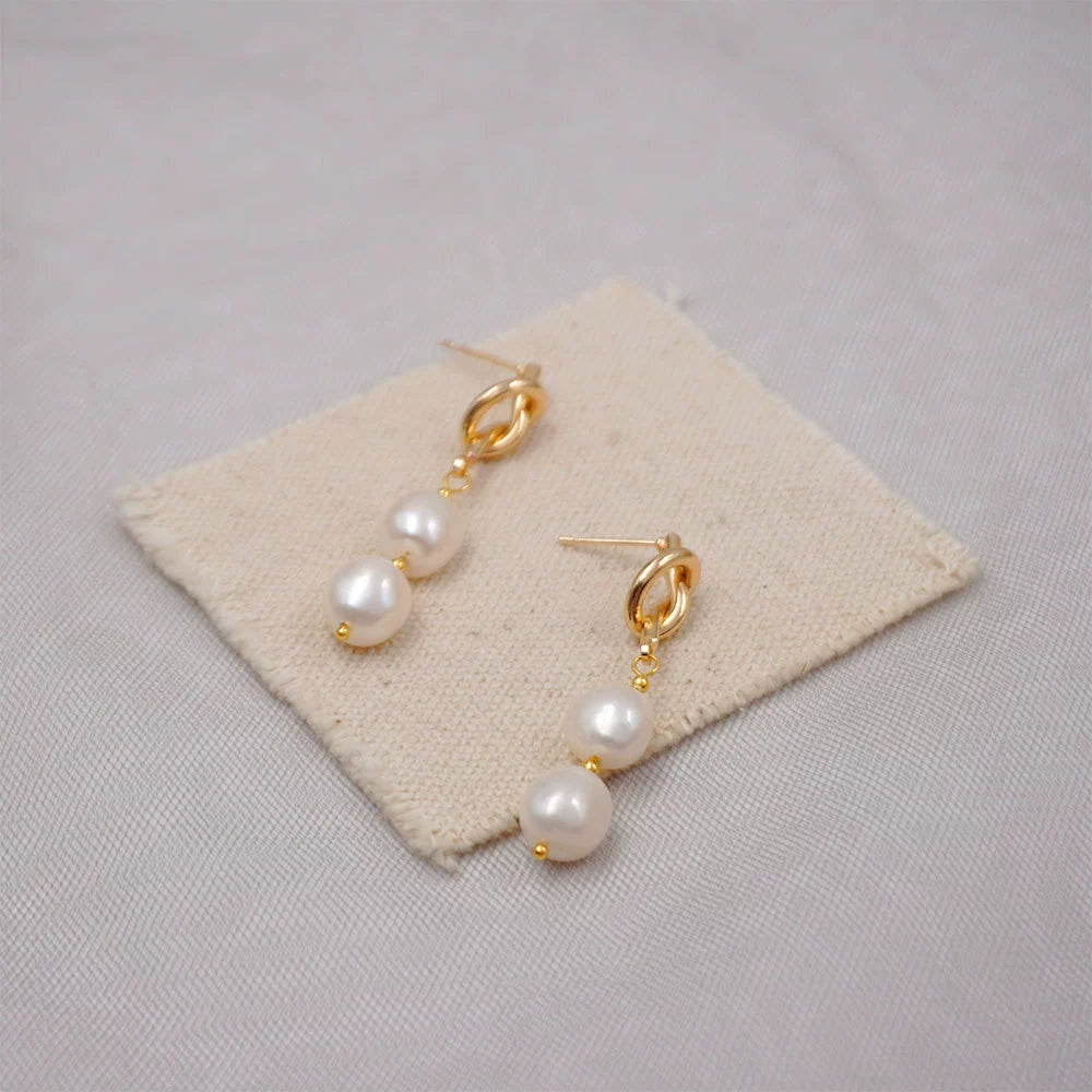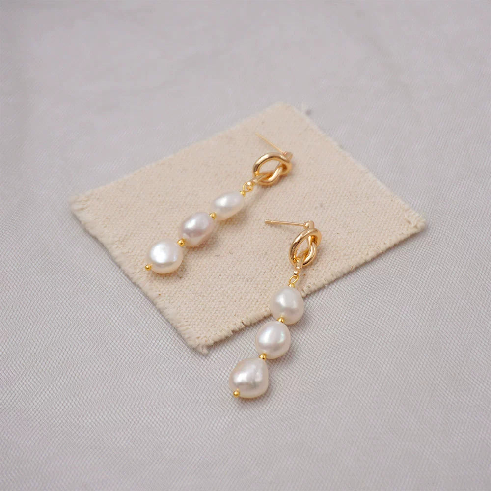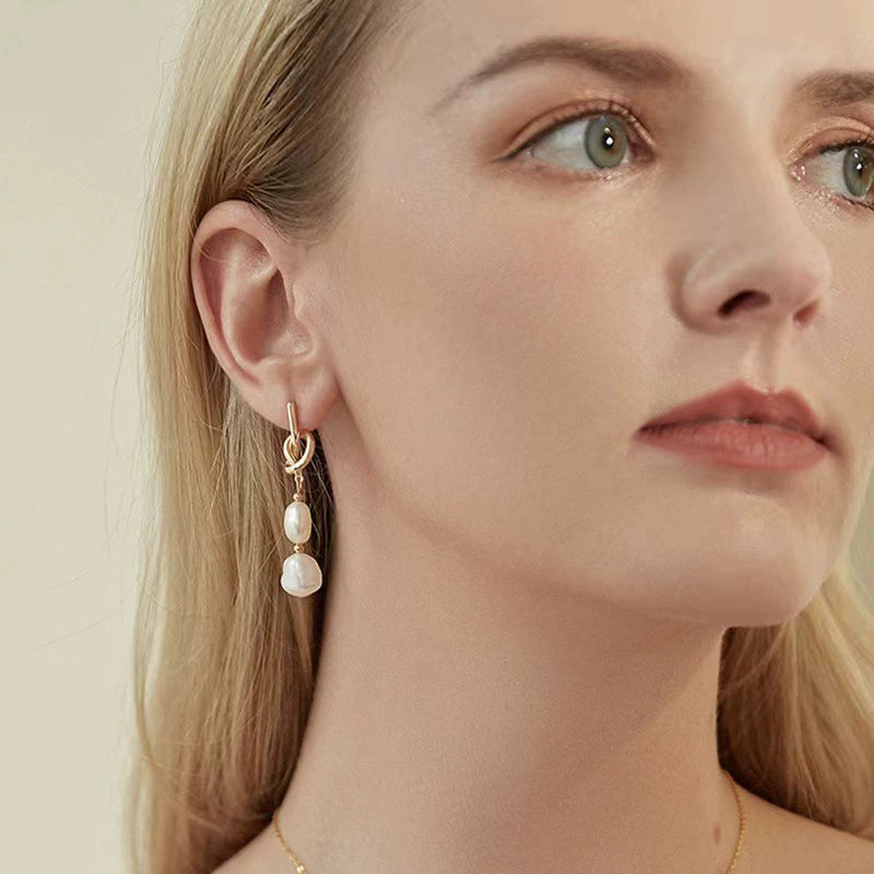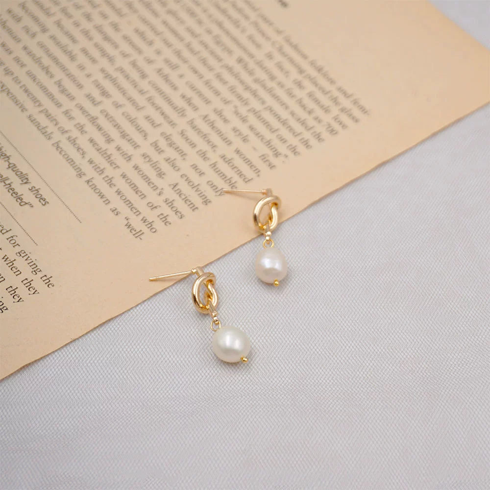Wholesale Earrings Copper Freshwater Pearl Retro Geometric Handmade For Women