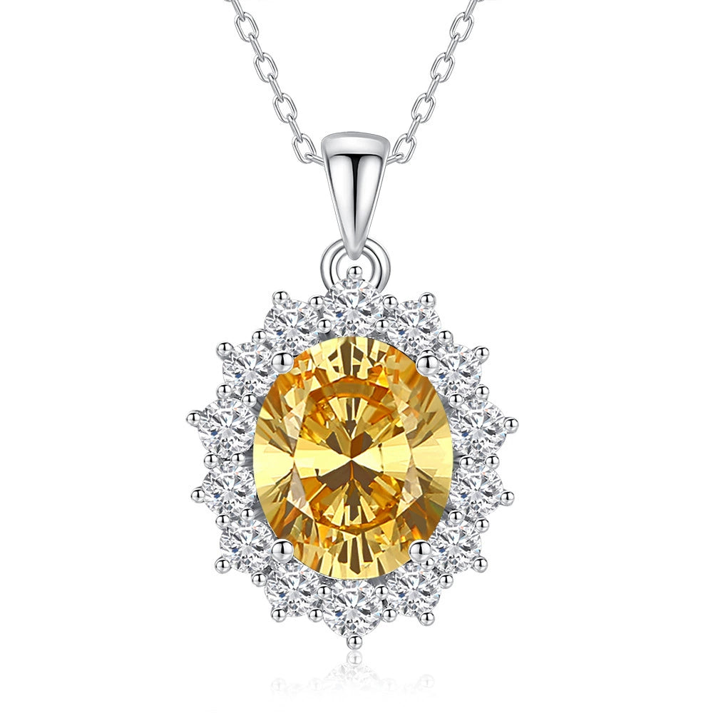 Wholesale Fashion Geometric Pigeon Egg Shaped Yellow Diamond 925 Sterling Silver Necklace With Floral Cut Zircon Pendant