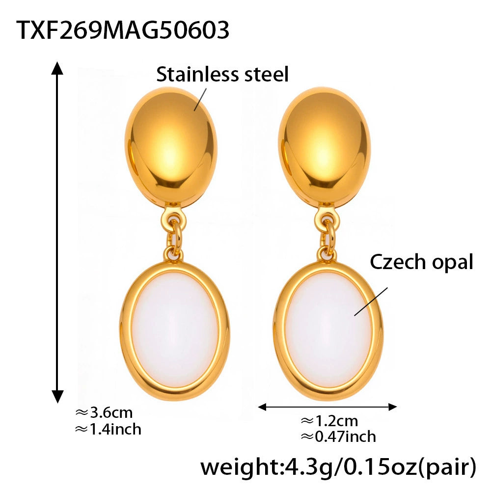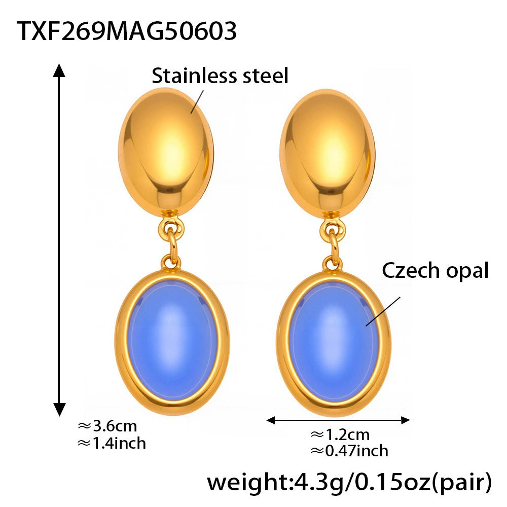 Wholesale Fashion Stainless Steel And Titanium Steel Ferris Wheel Jewelry Set With Opal Faceted Stone Brushed Surface 18K Gold Electroplated For Women