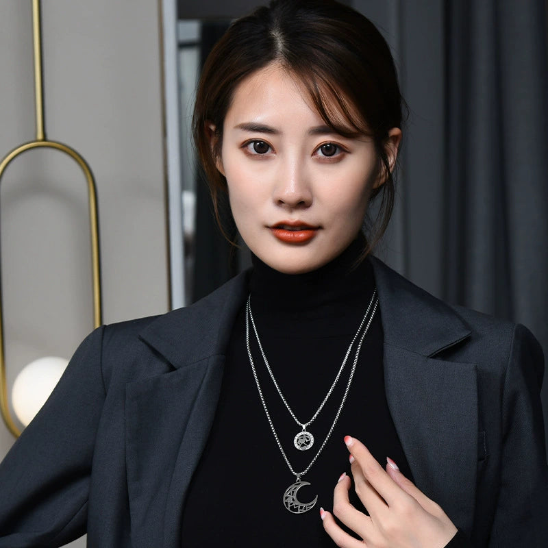 Wholesale Fashion Titanium Steel Couple Necklace With Hollow Letters Geometric Pattern Diamond Design And Stitching Flash And Hanging Chain
