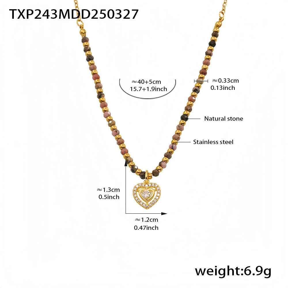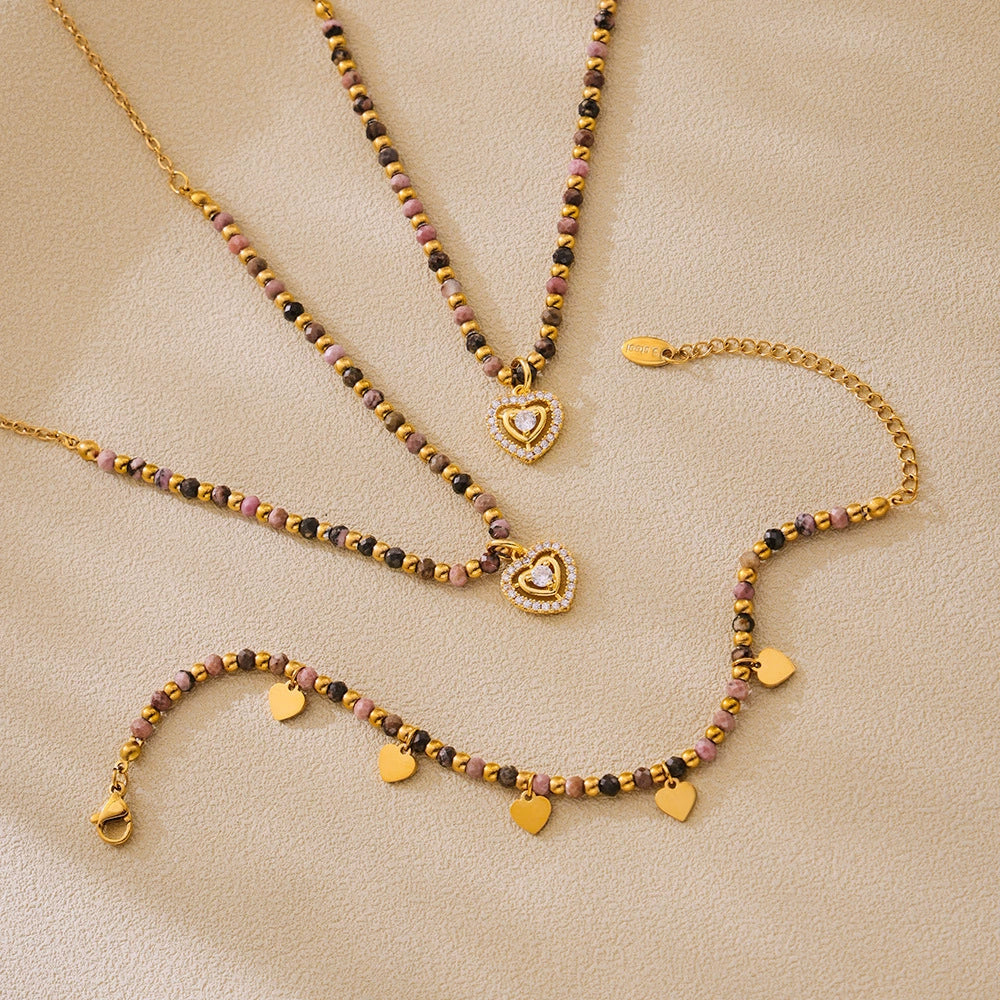 Wholesale Ferris Wheel Natural Stone Beaded Titanium Steel Electroplated Necklace And Bracelet Jewelry Set For Unisex