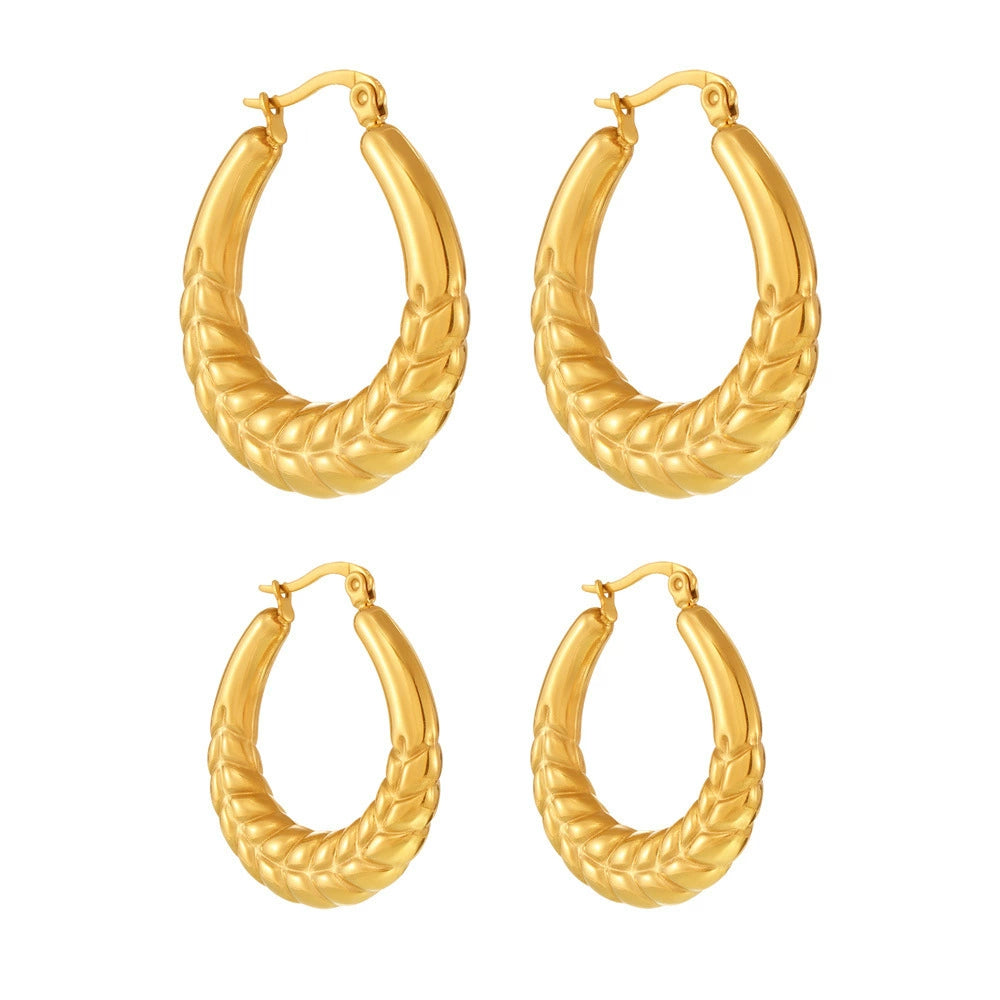Wholesale Geometric Light Luxury Style Stainless Steel Gold Plated Ferris Wheel And Wheat Grain Earrings For Women