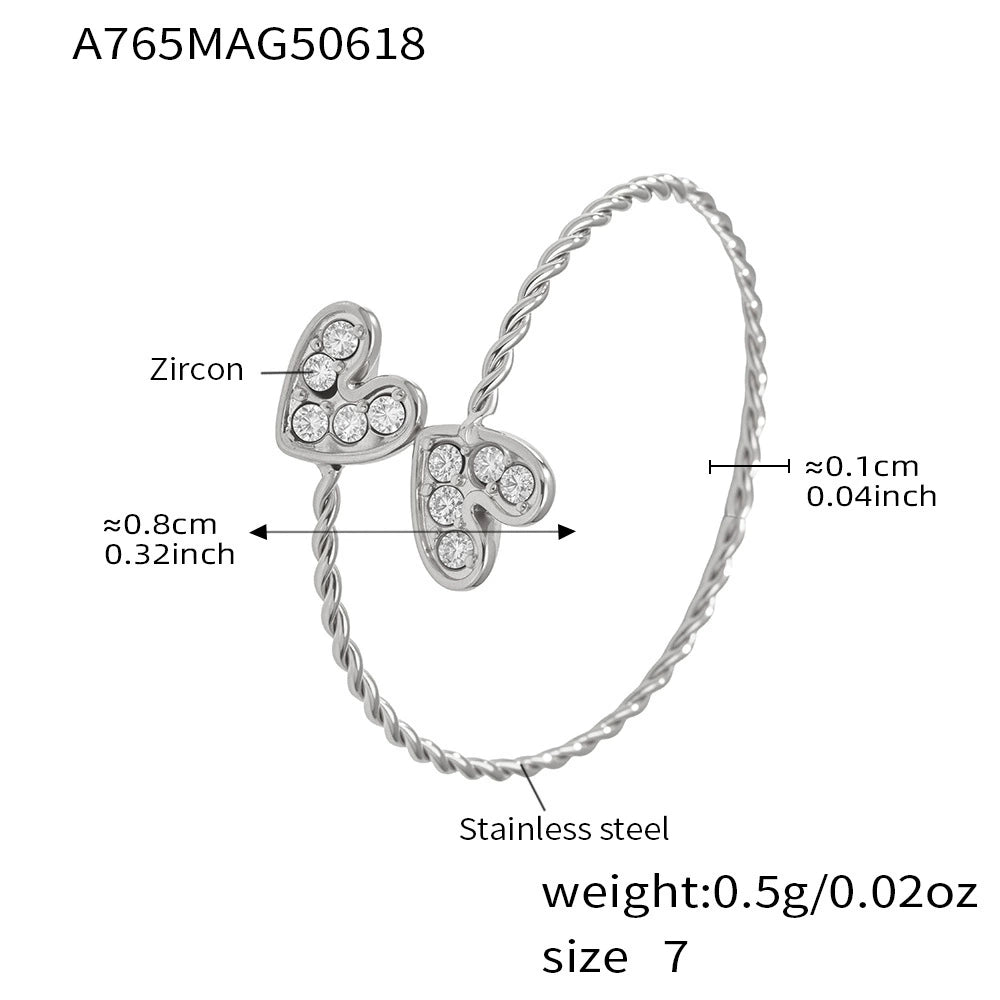 Wholesale Girls' 316L Stainless Steel 18K Gold Plated Geometric Love Pattern Ring Hand Jewelry Set