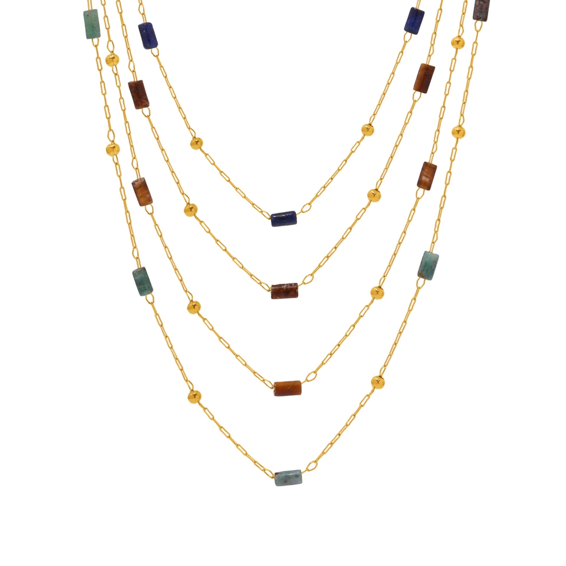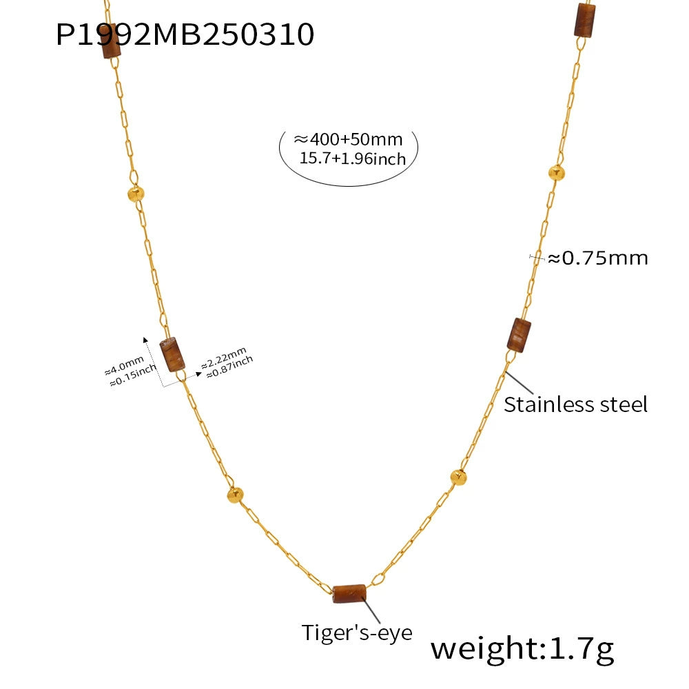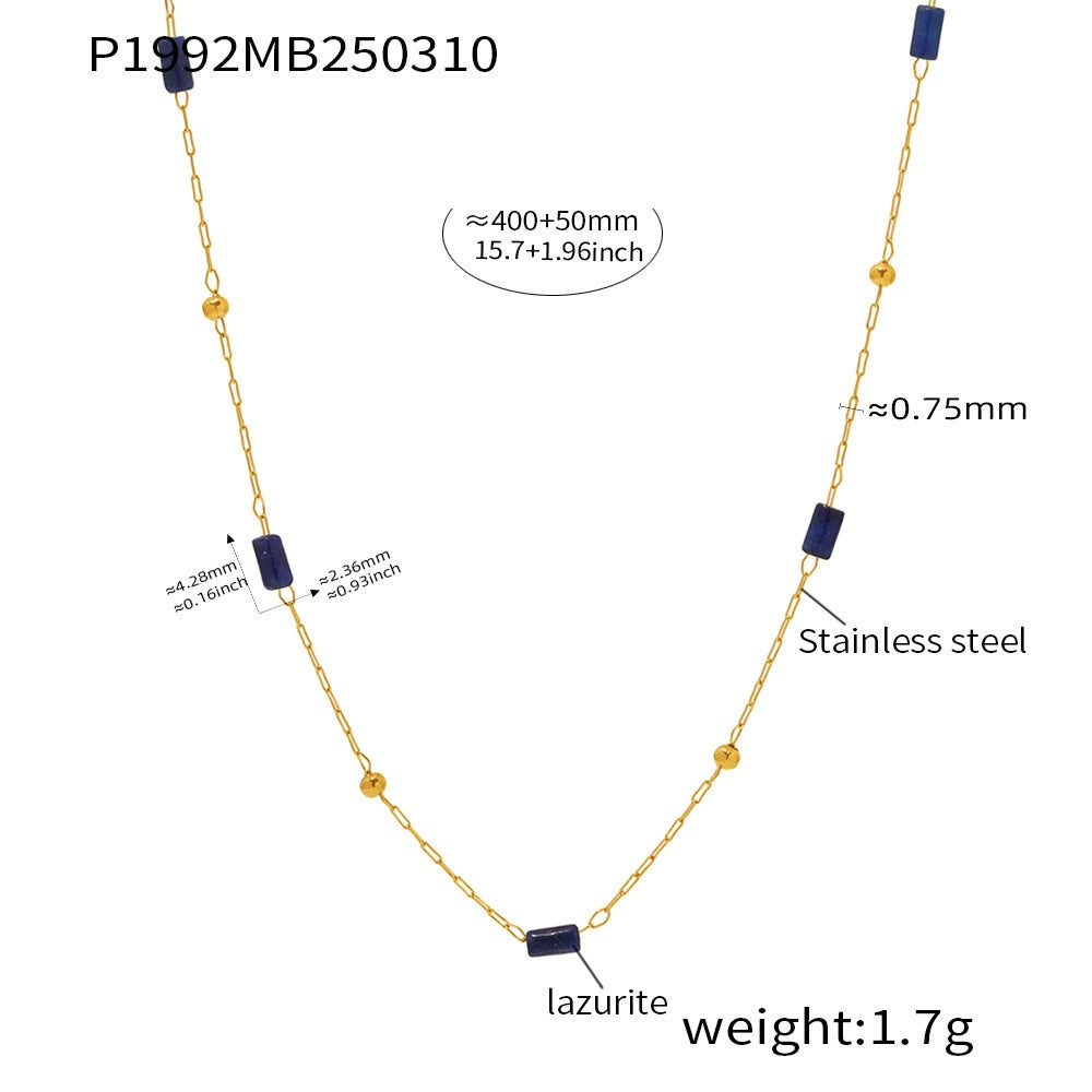 Wholesale Handmade Beaded Necklace For Women Ferris Wheel Design With Geometric Lapis Lazuli Pendant Stainless Steel Tiger Eye Stone Chain Gold Plated