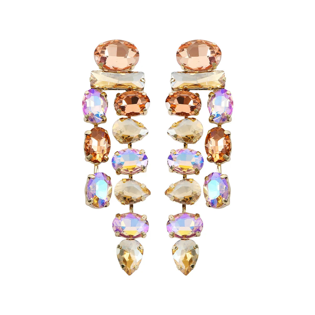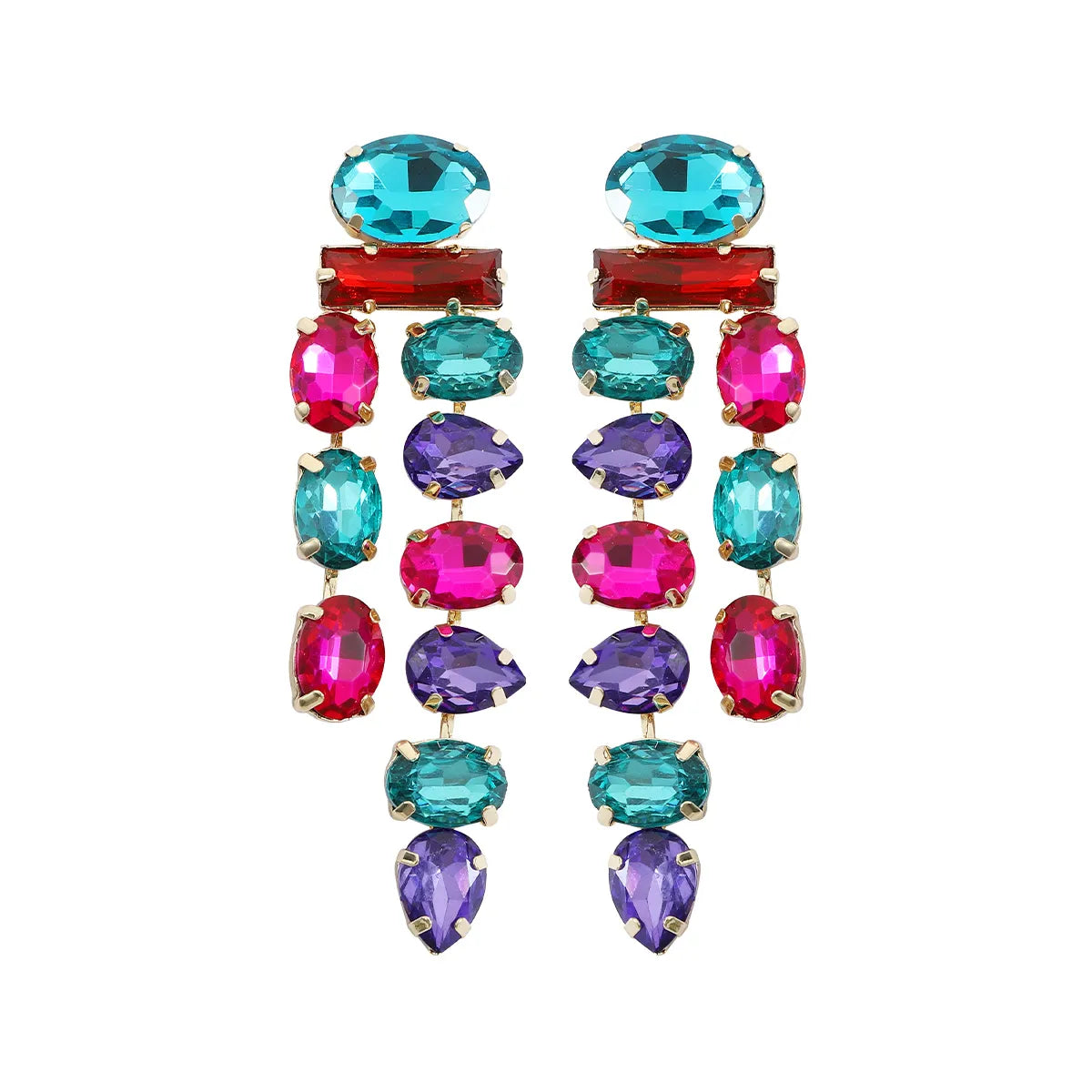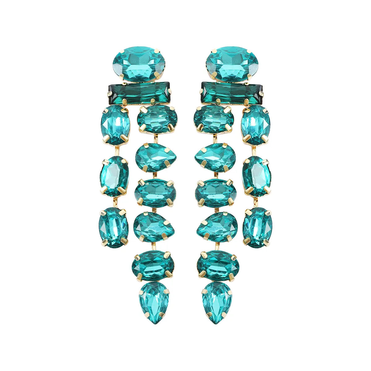 Wholesale Jewelry 1 Pair Luxurious Oval Water Droplets Alloy Artificial Gemstones Drop Earrings