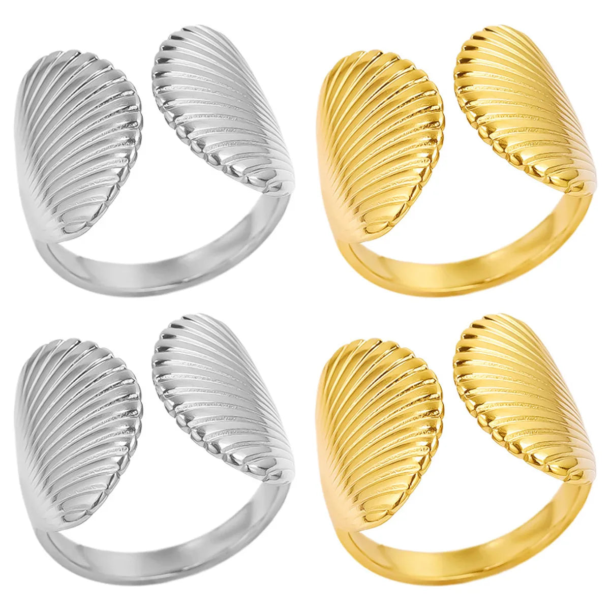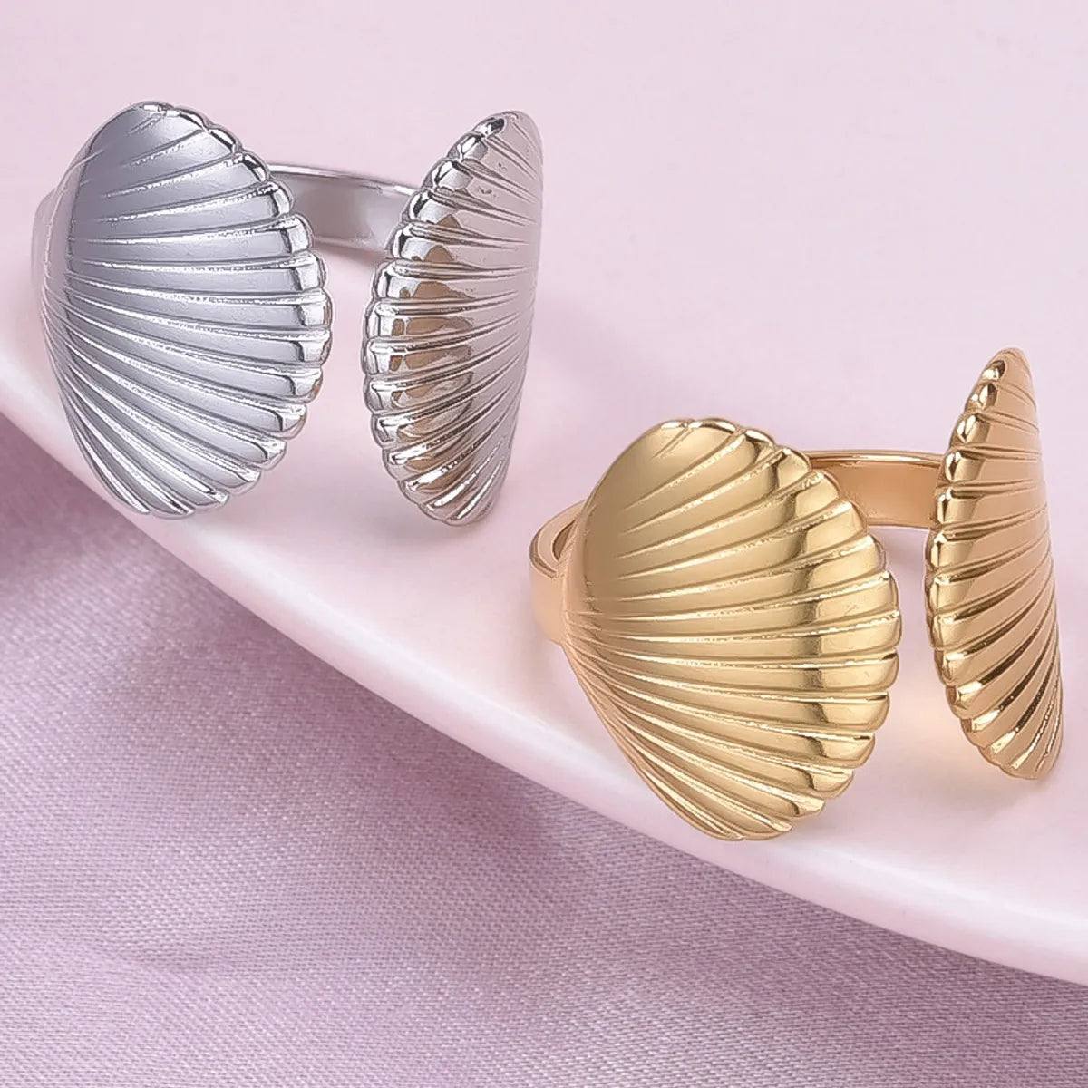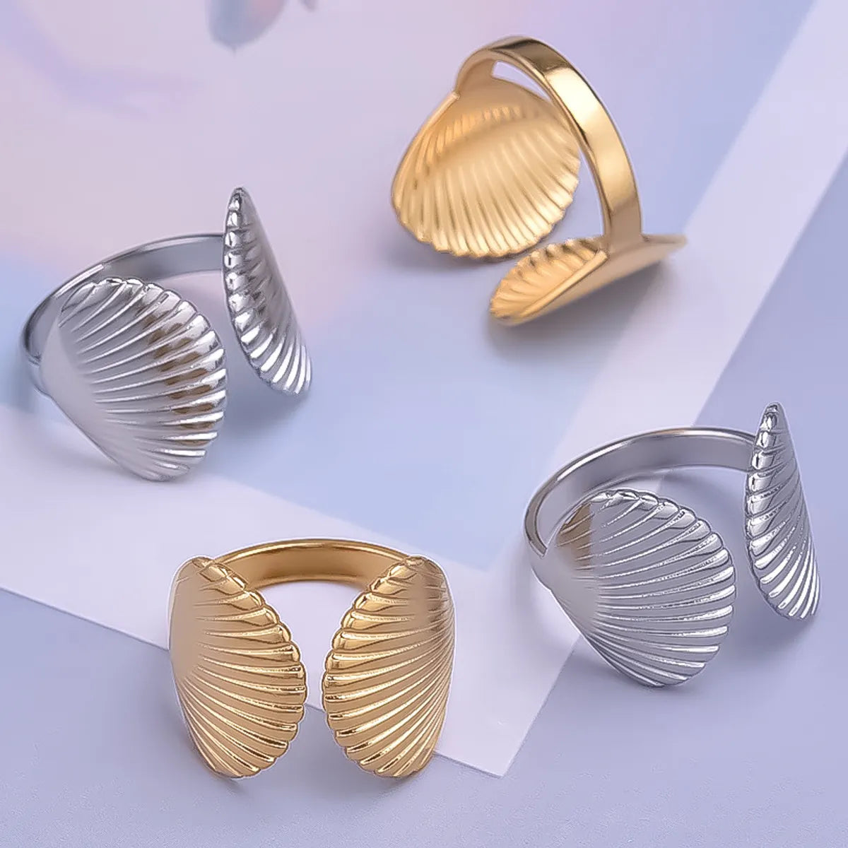 Wholesale Jewelry Casual Marine Style Scallop 304 Stainless Steel 18K Gold Plated Polishing Open Rings