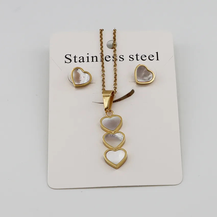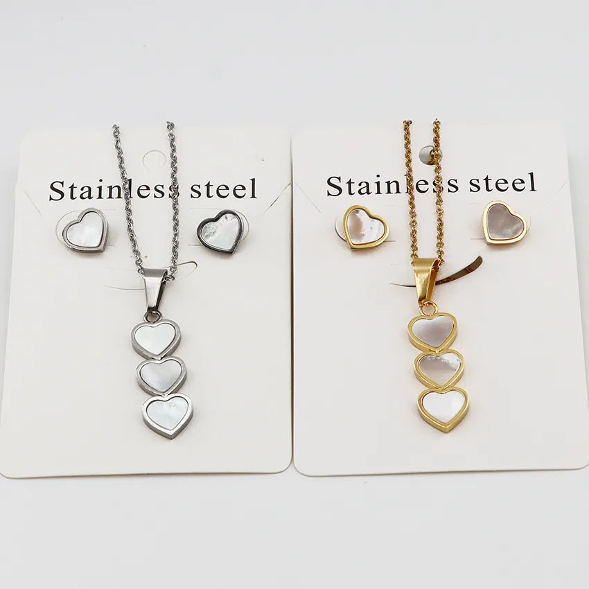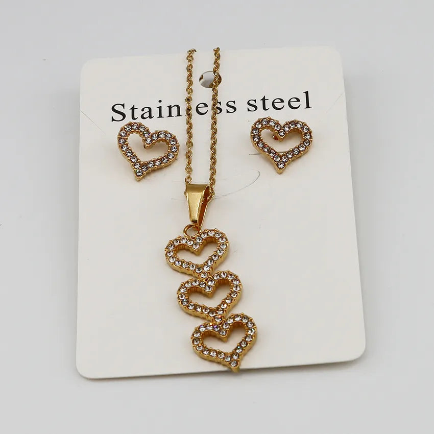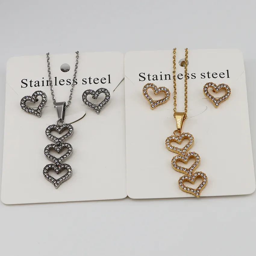 Wholesale Jewelry Casual Simple Style Classic Style Heart Shape 304 Stainless Steel Gold Plated Jewelry Set