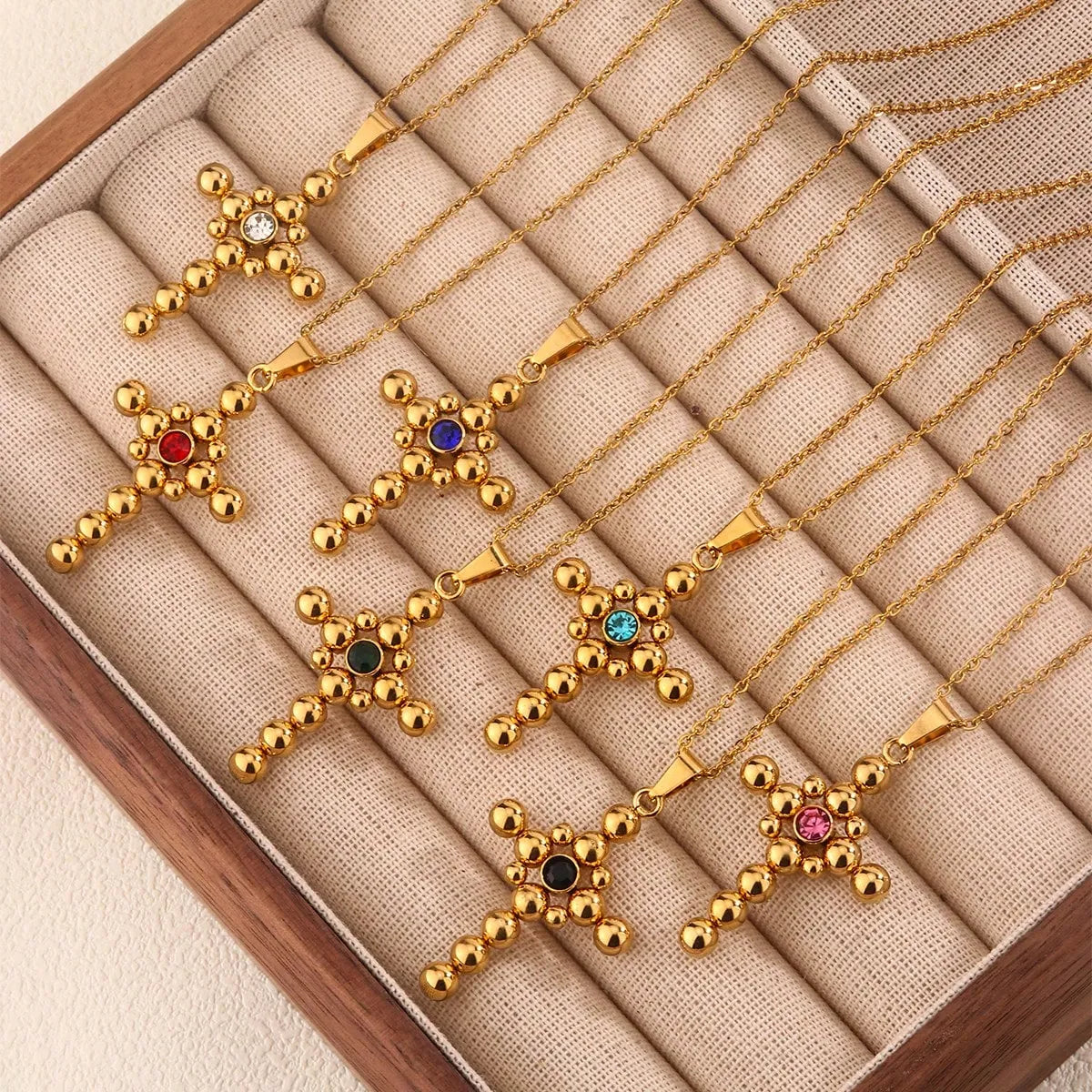 Wholesale Jewelry Classic Style Cross 304 Stainless Steel 18K Gold Plated Pendant Necklace