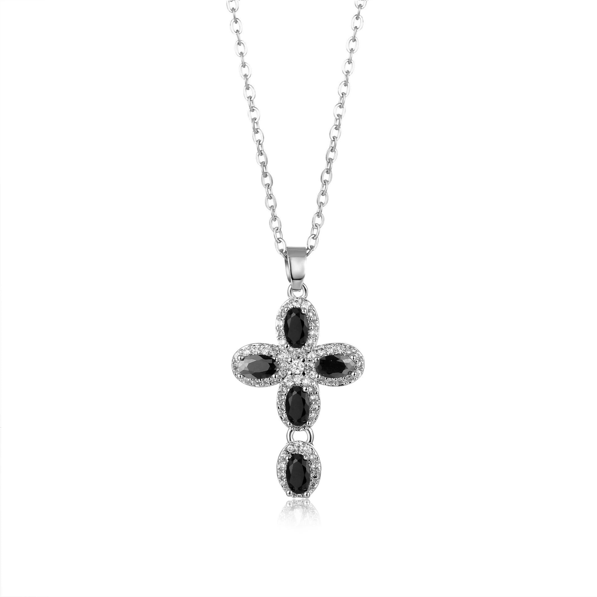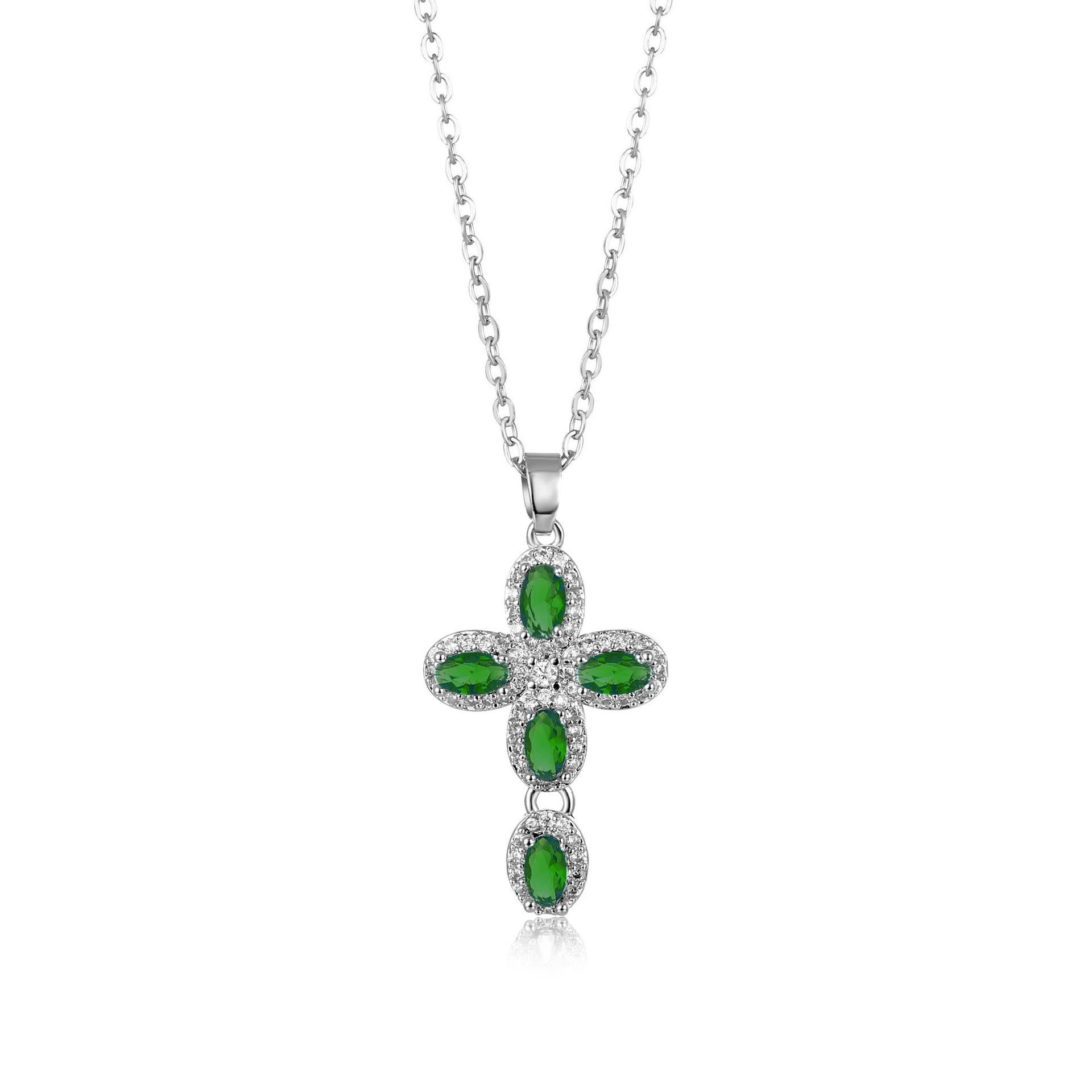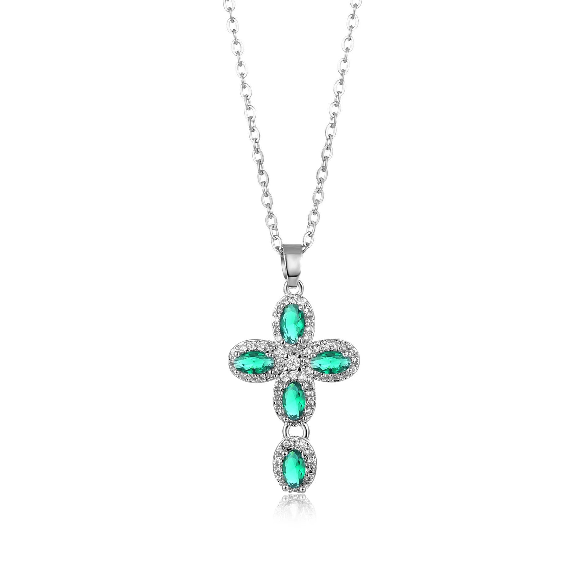 Wholesale Jewelry Copper Inlaid Zircon Geometric Cross Pendant Necklace