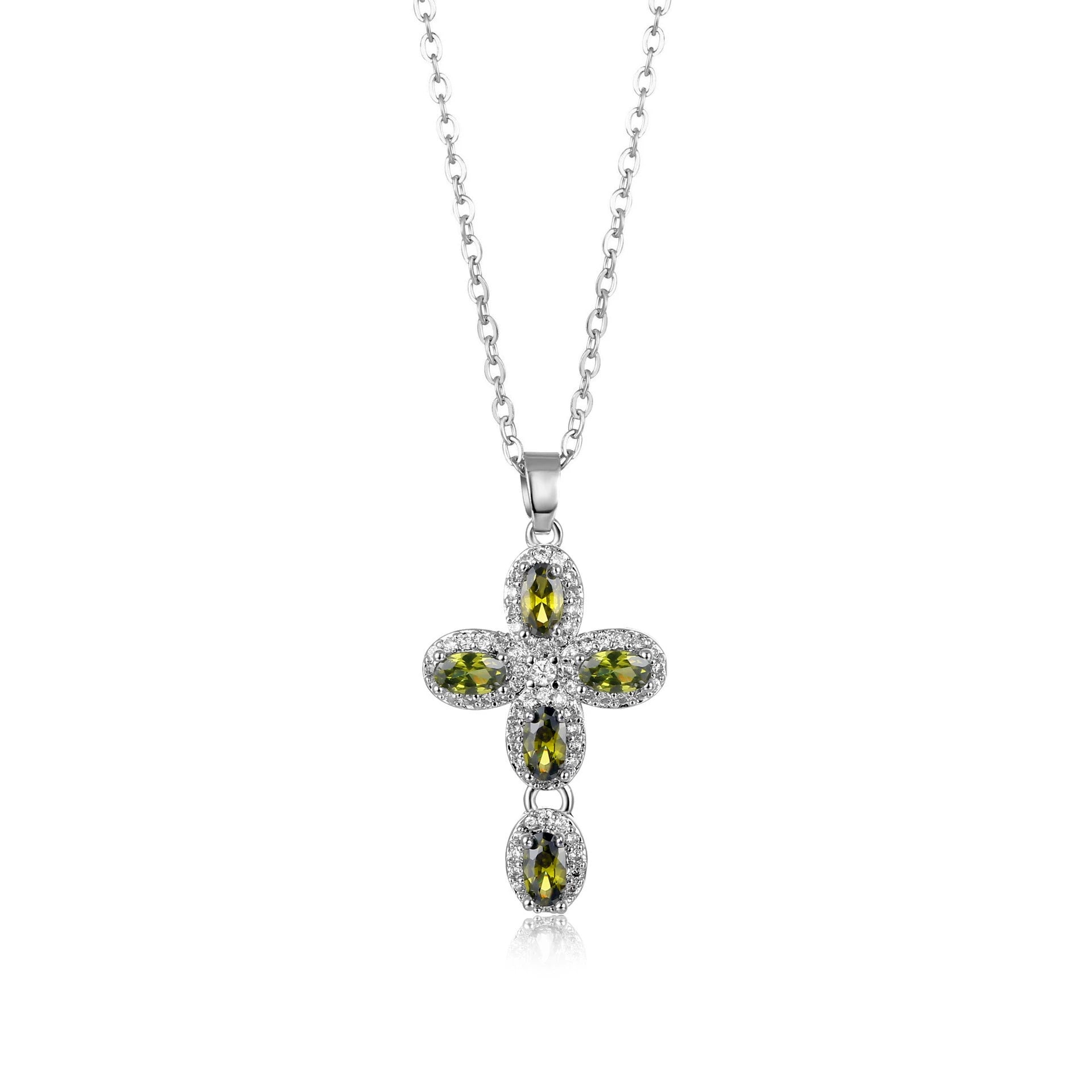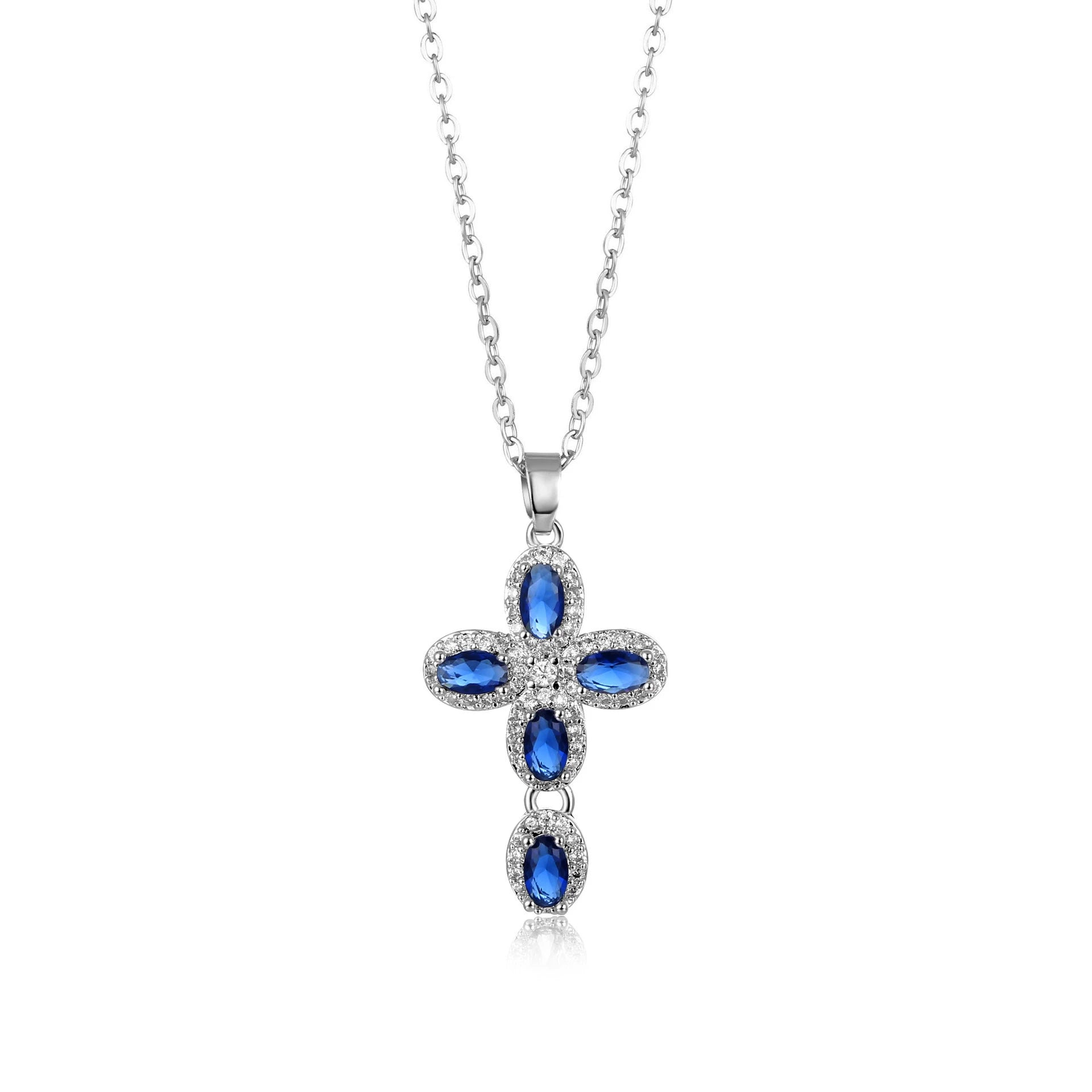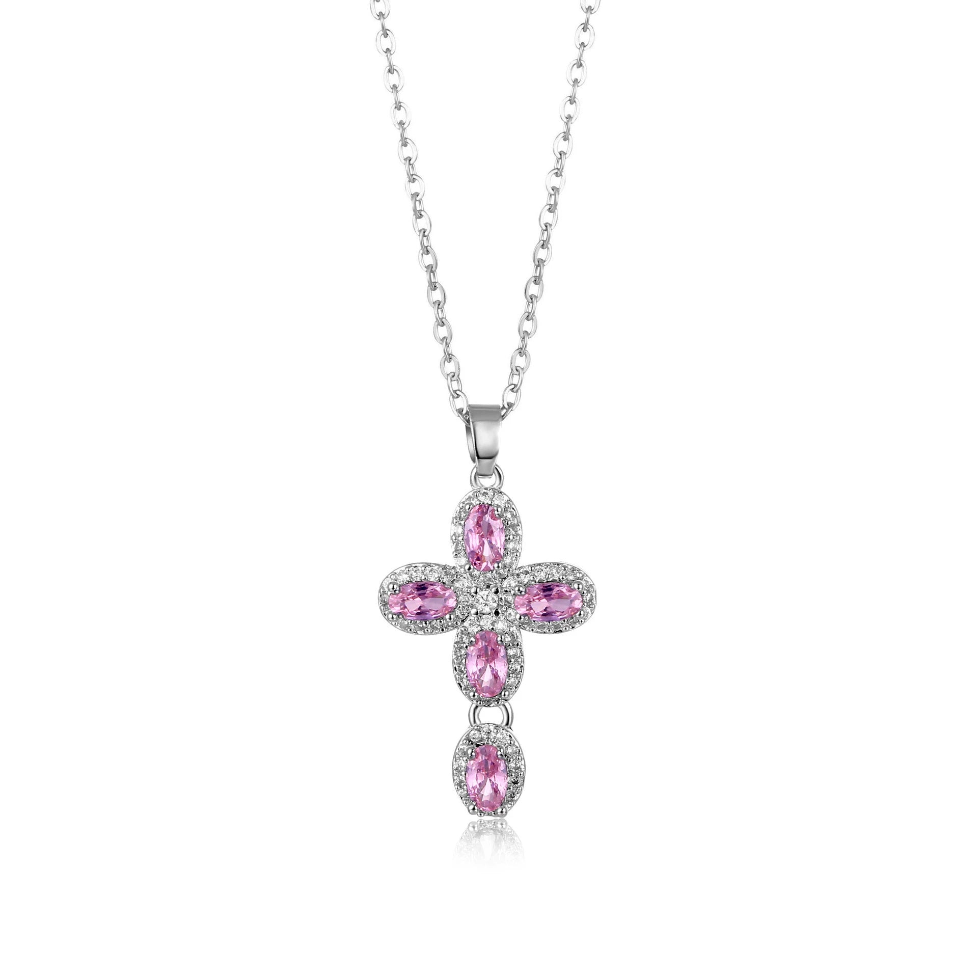 Wholesale Jewelry Copper Inlaid Zircon Geometric Cross Pendant Necklace