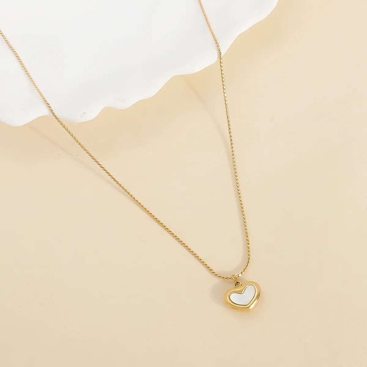 Wholesale Jewelry Elegant Romantic Sweet Heart Shape 304 Stainless Steel Shell 18K Gold Plated Plating Inlay Pendant Necklace