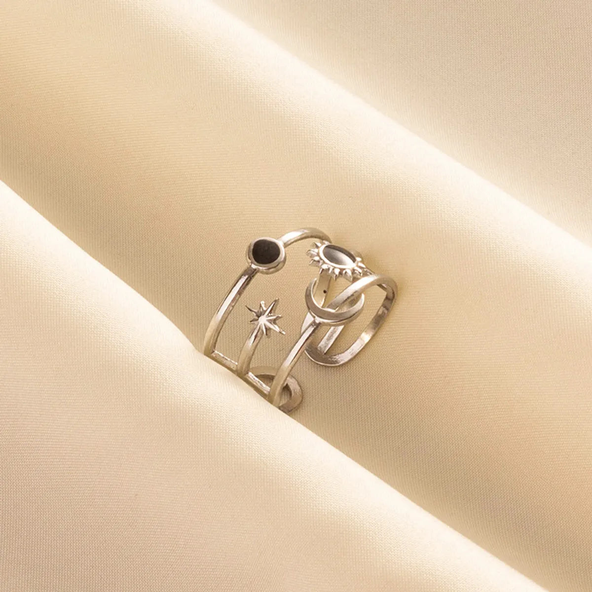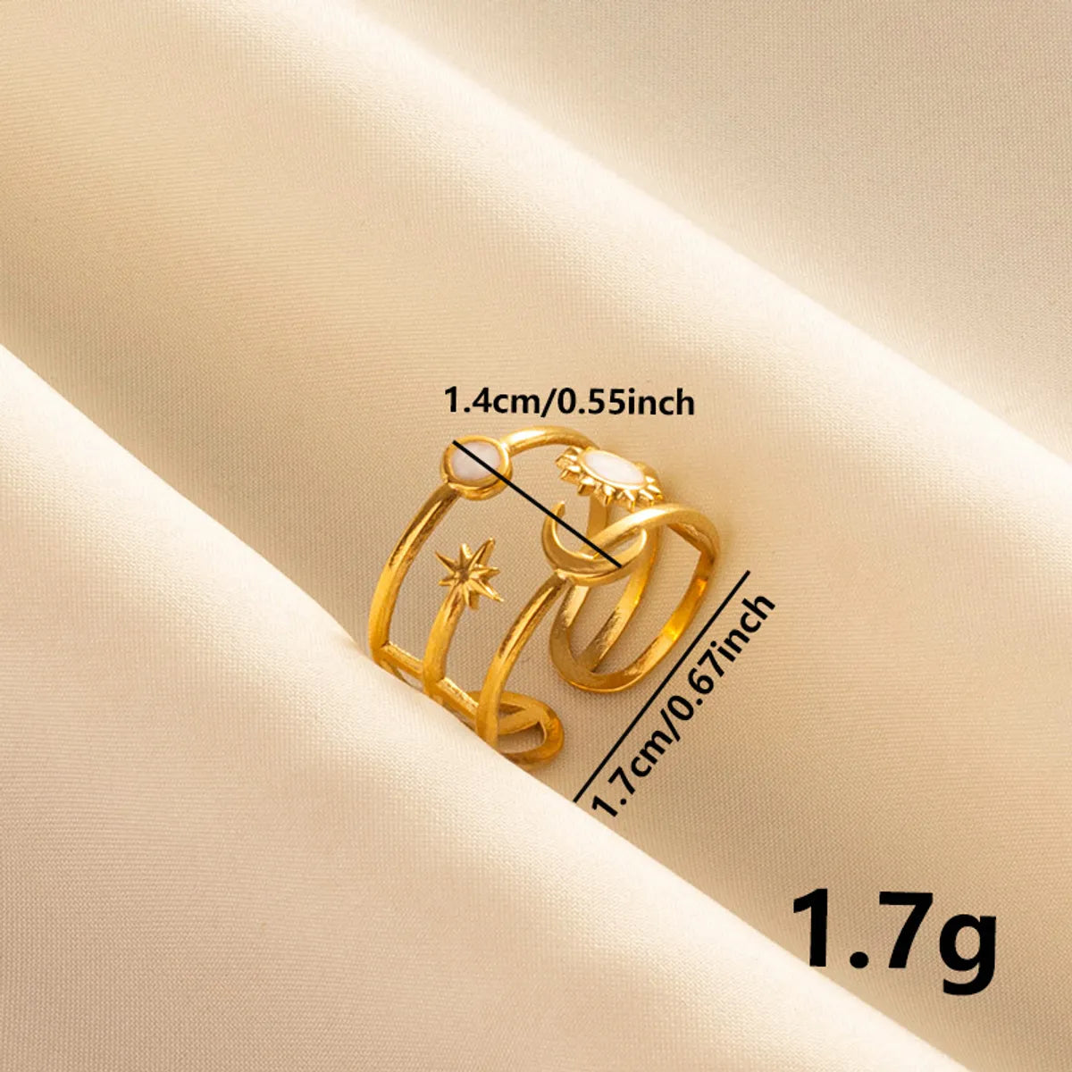 Wholesale Jewelry French Style Modern Style Geometric Sun Moon 304 Stainless Steel 18K Gold Plated Polishing Enamel Open Rings