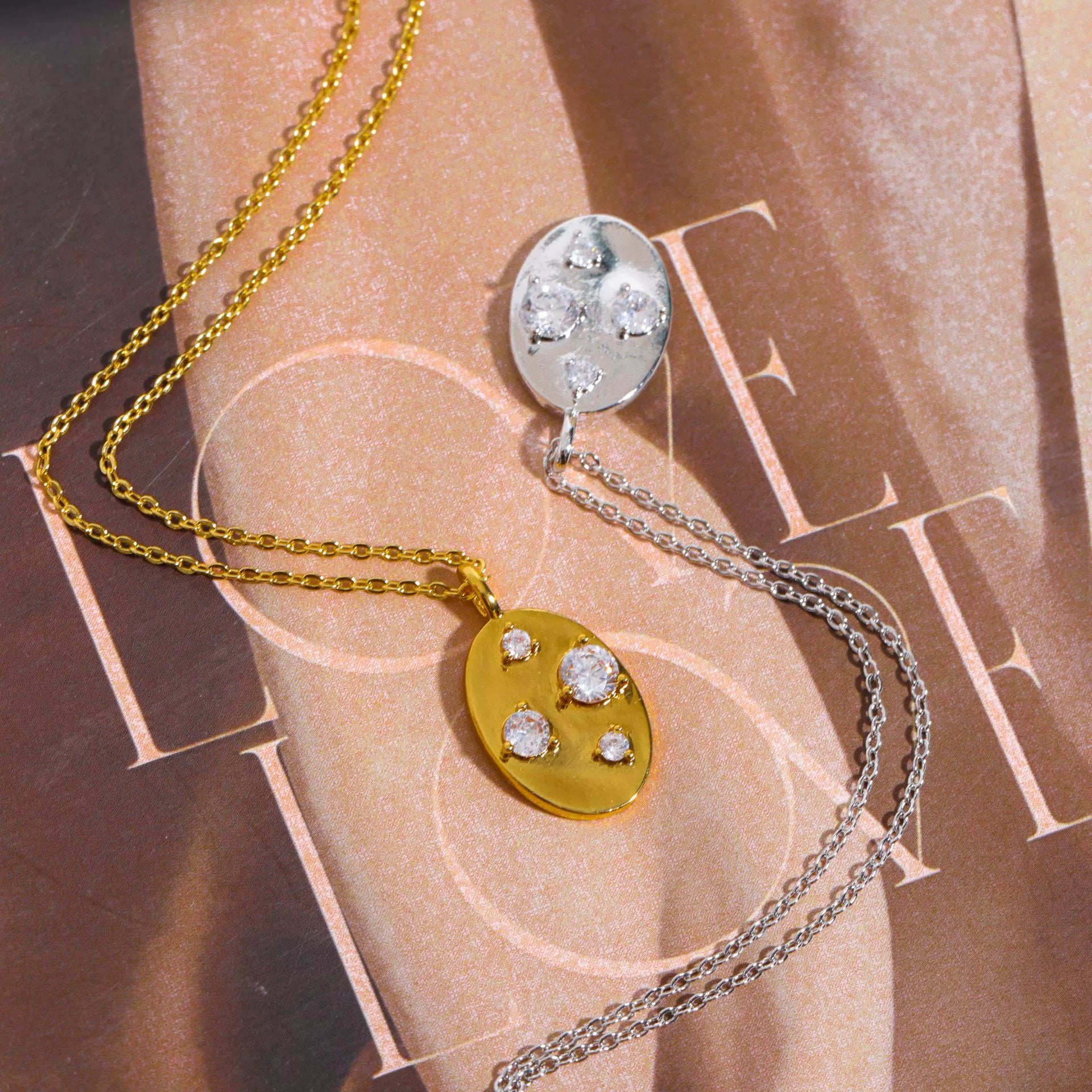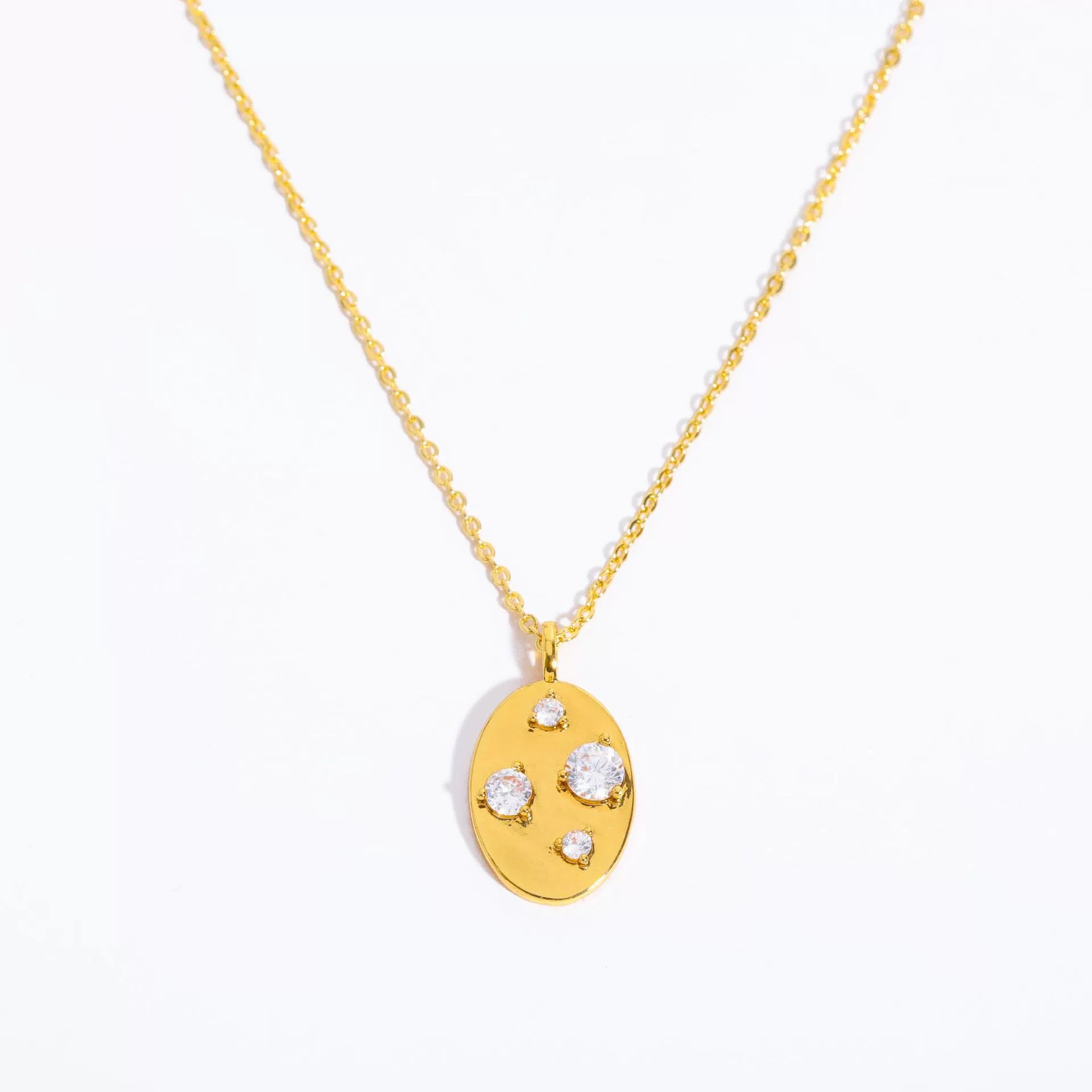Wholesale Jewelry Geometric Irregular Oval Zircon Pendant Necklace Copper Titanium Steel Goldplated