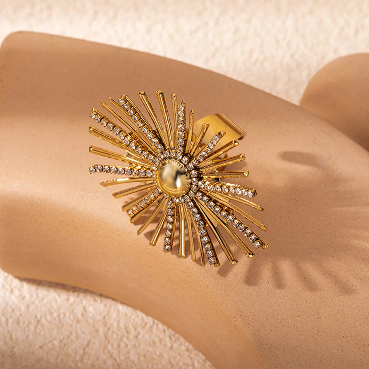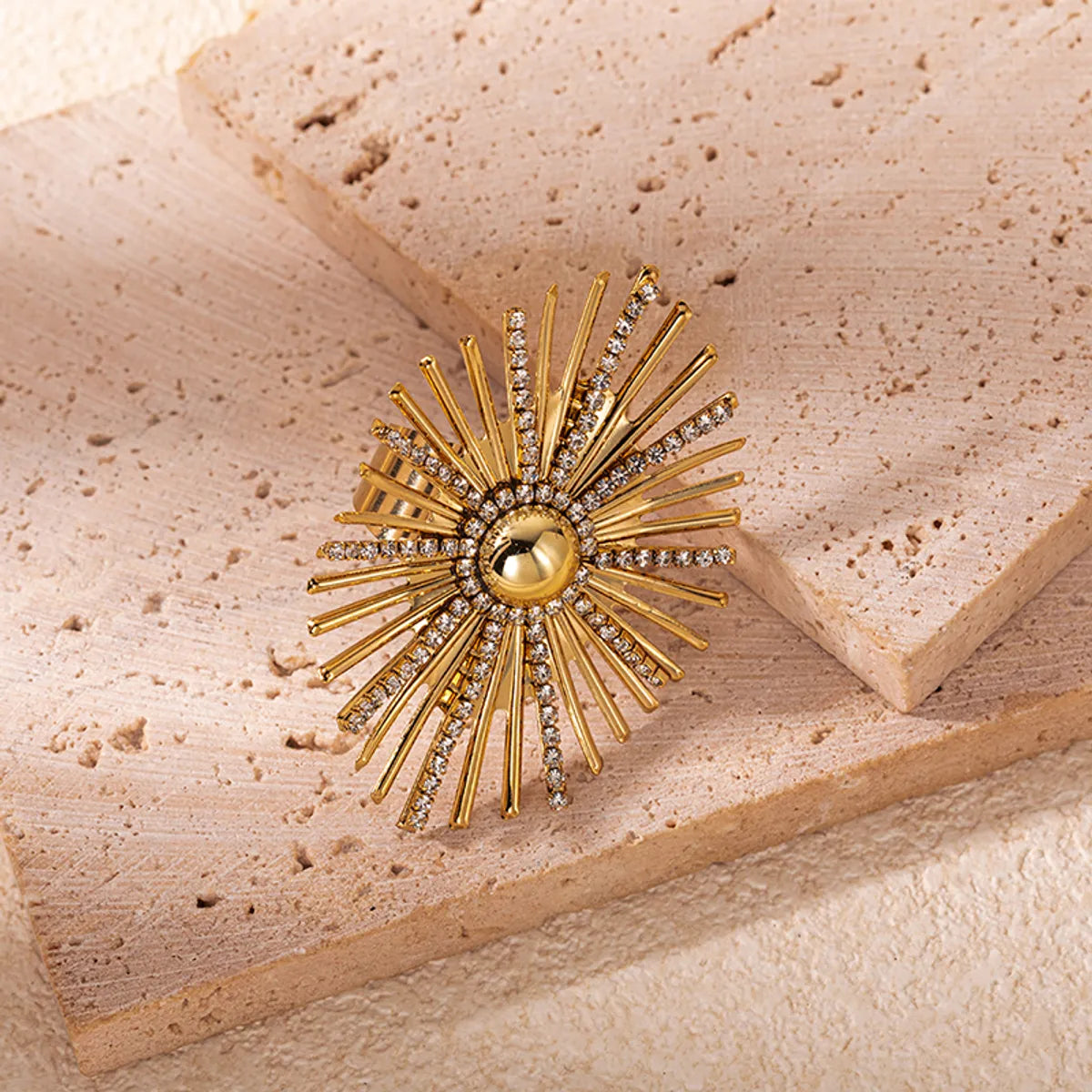Wholesale Jewelry IG Style Modern Style Cool Style Sun 304 Stainless Steel Zircon 14K Gold Plated Plating Inlay Open Rings
