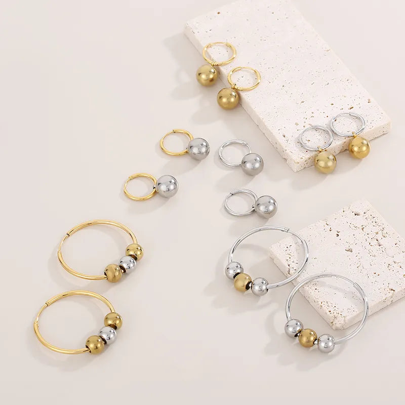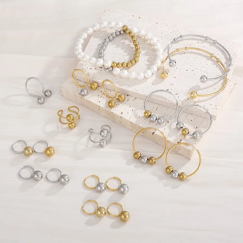 Wholesale Jewelry IG Style Simple Style Round Titanium Steel 18K Gold Plated Pearl Plating Rings Bracelets Earrings