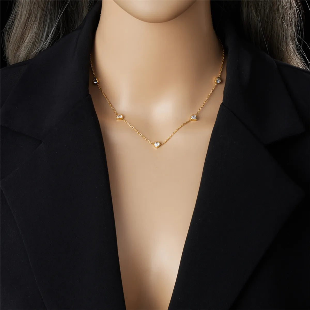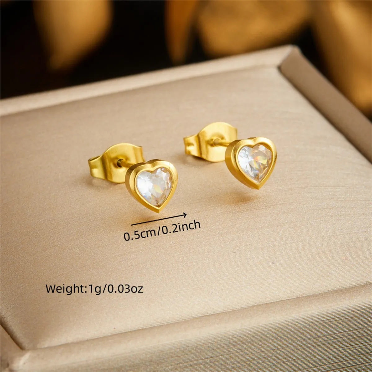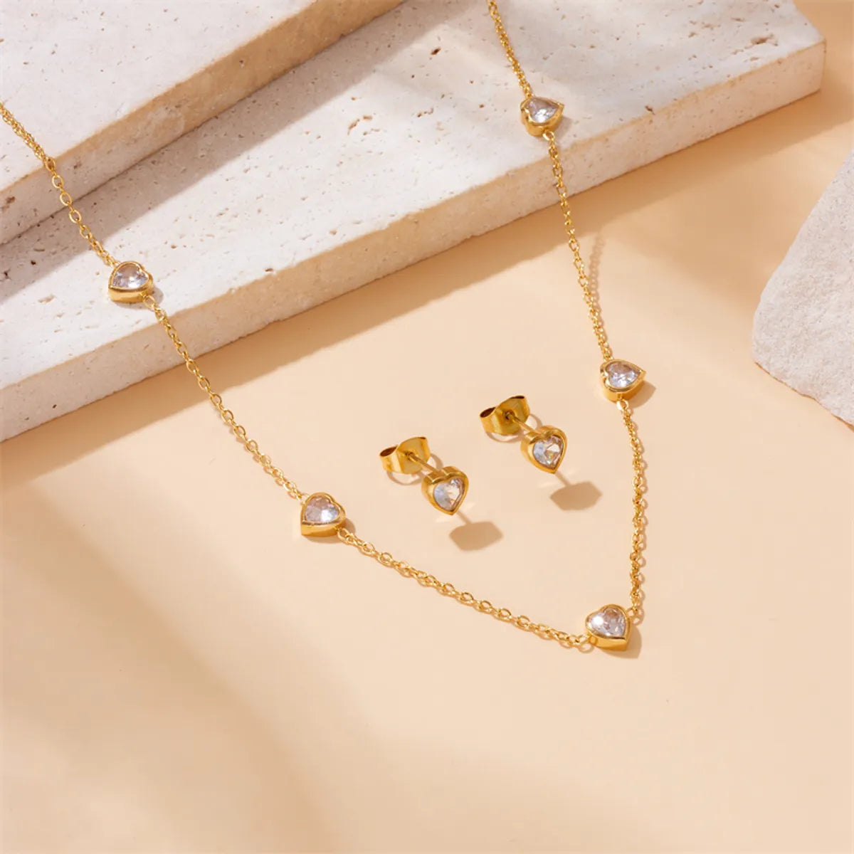 Wholesale Jewelry IG Style Vintage Style Sweet Heart Shape 304 Stainless Steel Rhinestones 18K Gold Plated Inlay Jewelry Set