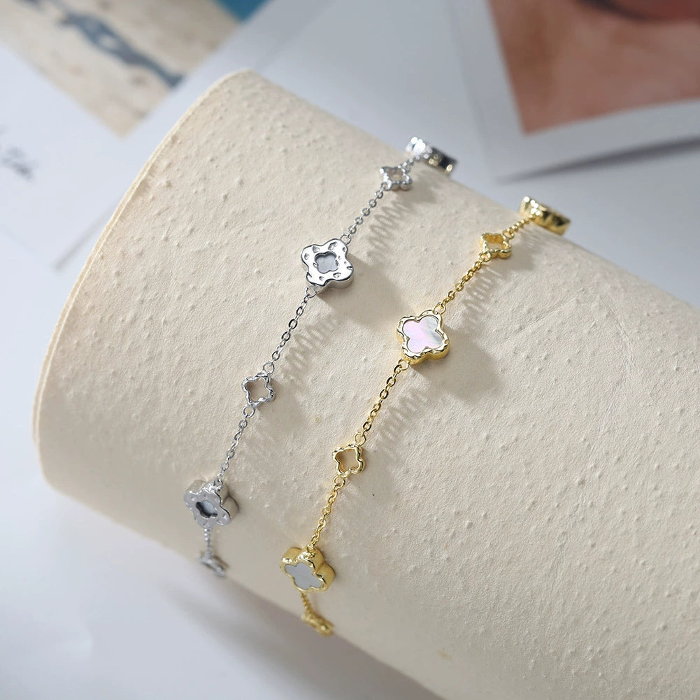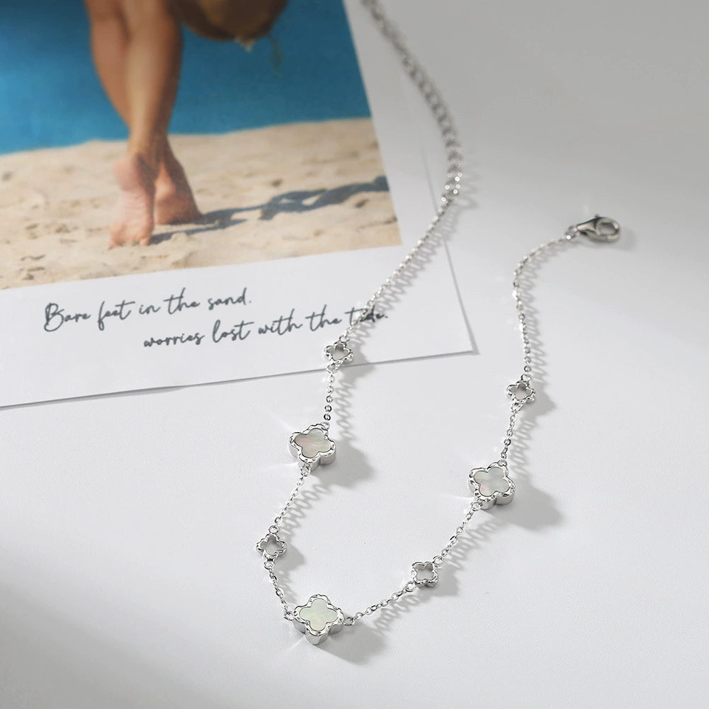 Wholesale Jewelry S925 Silver Hollow Four Leaf Clover Geometric Anklet