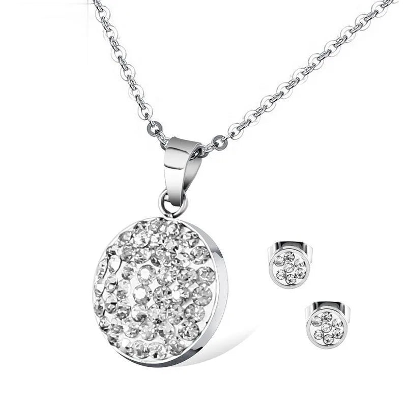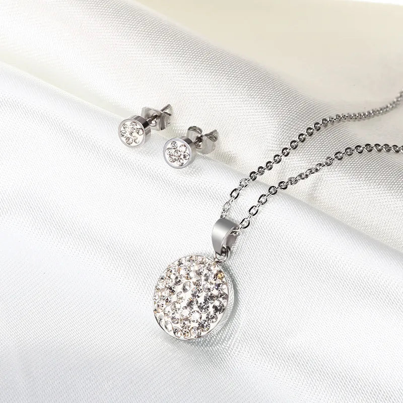 Wholesale Jewelry Simple Style Classic Style Round 304 Stainless Steel Rhinestones 18K Gold Plated Inlay Earrings Necklace