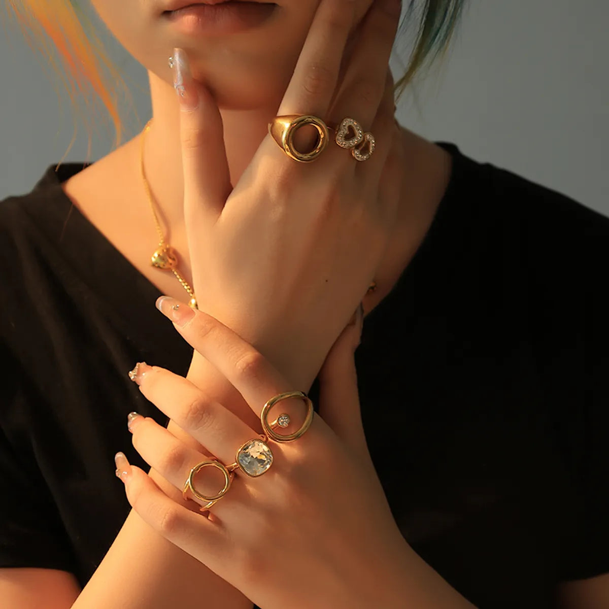 Wholesale Jewelry Simple Style Commute Round Square Heart Shape 304 Stainless Steel Zircon 14K Gold Plated Asymmetrical Plating Inlay Rings
