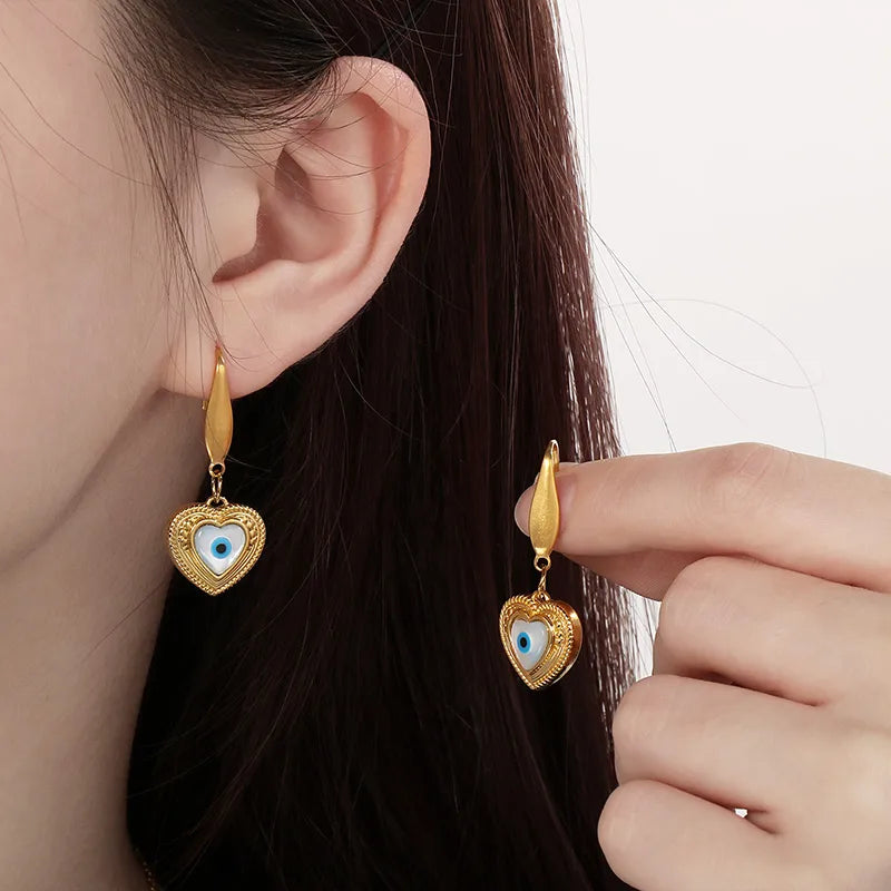 Wholesale Jewelry Simple Style Devil'S Eye 304 Stainless Steel Shell 18K Gold Plated Inlay Earrings Necklace Jewelry Set