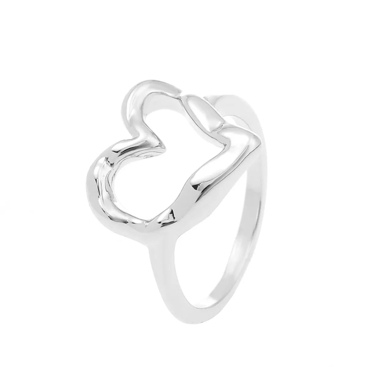 Wholesale Jewelry Simple Style Heart Shape Alloy 14k Gold Plated Hollow Out Open Ring