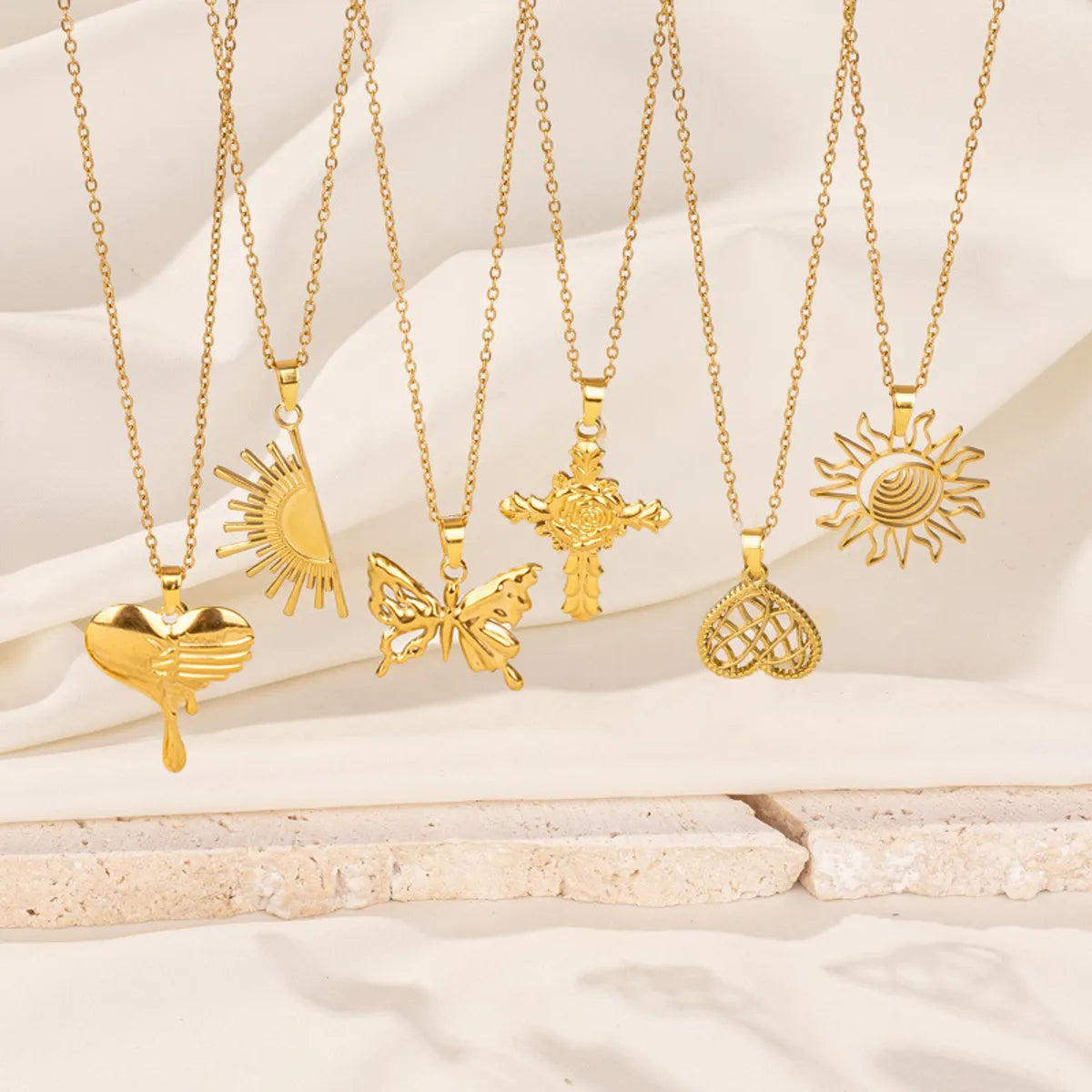 Wholesale Jewelry Simple Style Sun Heart Shape Butterfly 304 Stainless Steel Chain Pendant Necklace