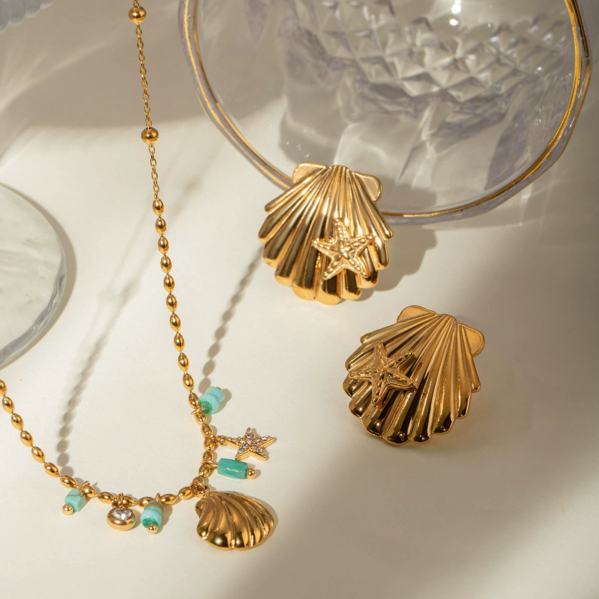 Wholesale Jewelry Stainless Steel Shell Geometric Starfish Earrings For Women With Electroplating Treatment In Natural Style