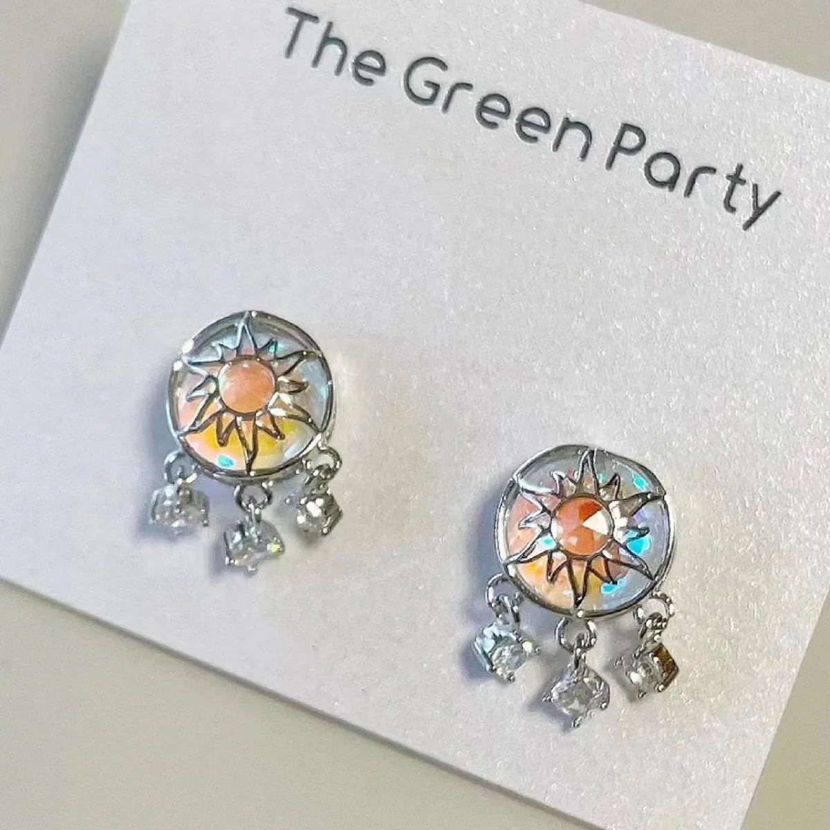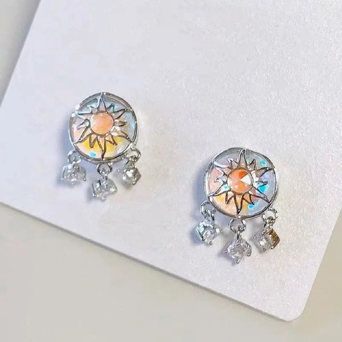 Wholesale Jewelry Sweet Sun Tassel Metal Natural Stone Plating Inlay Ear Studs