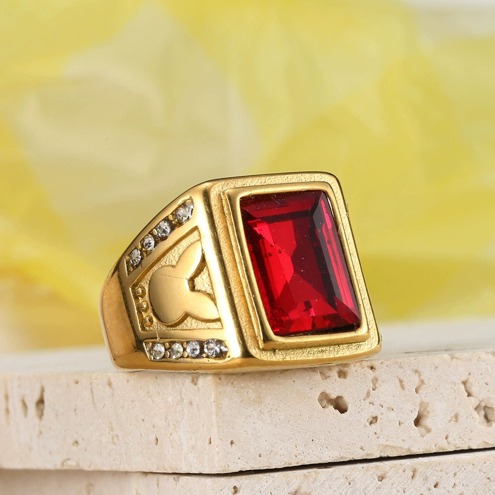 Wholesale Jewelry Titanium Steel Geometric Square Stone Ring For Men Punk Style Polishing
